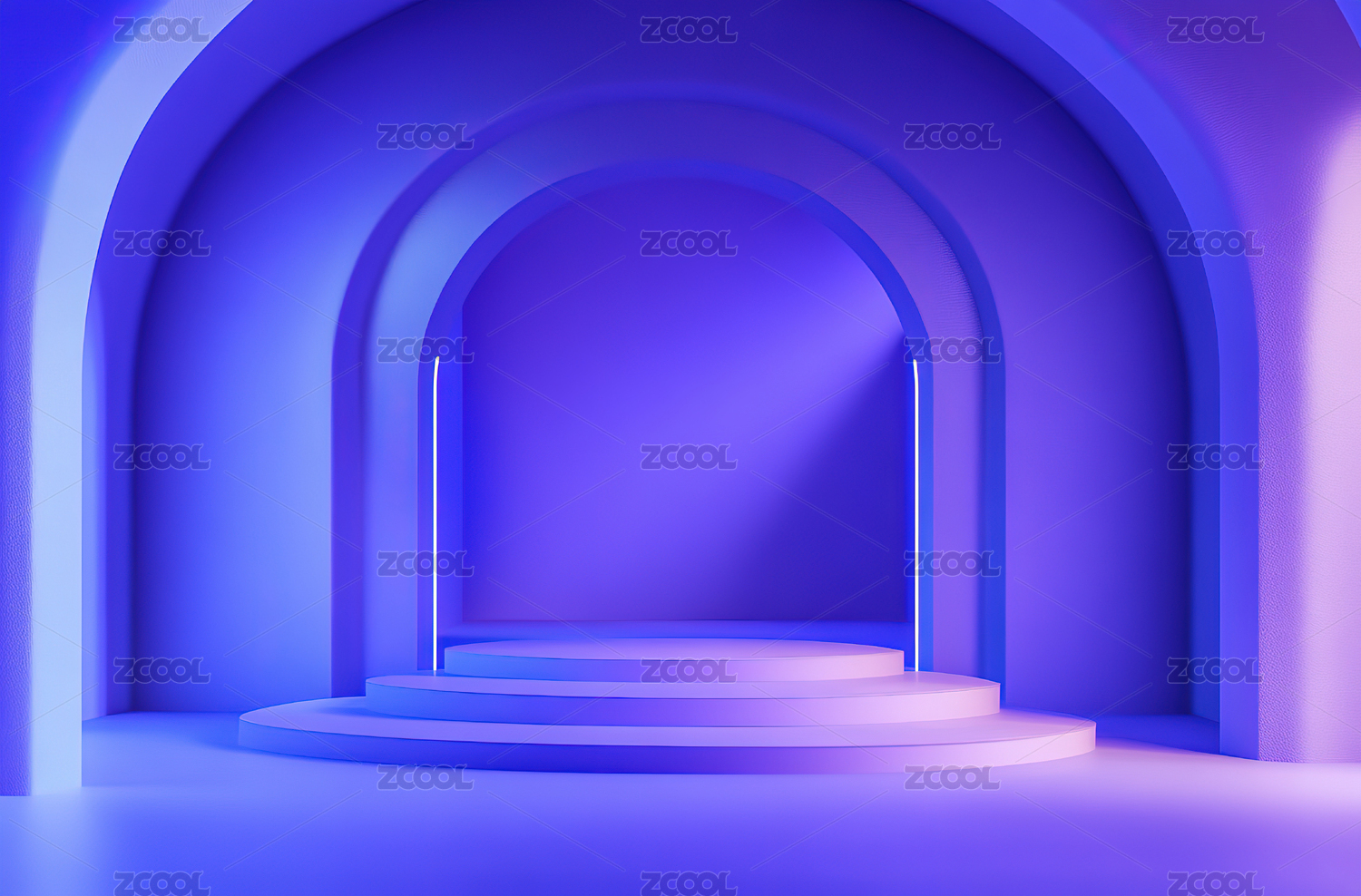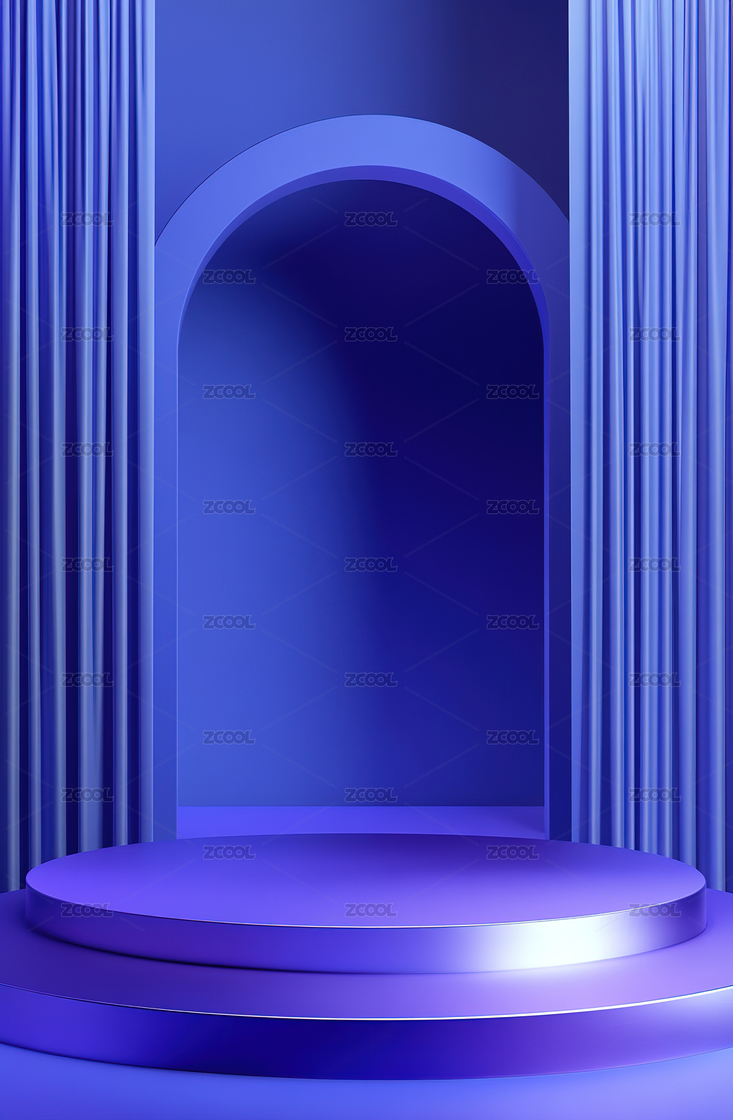 蓝色背景下的空走廊
