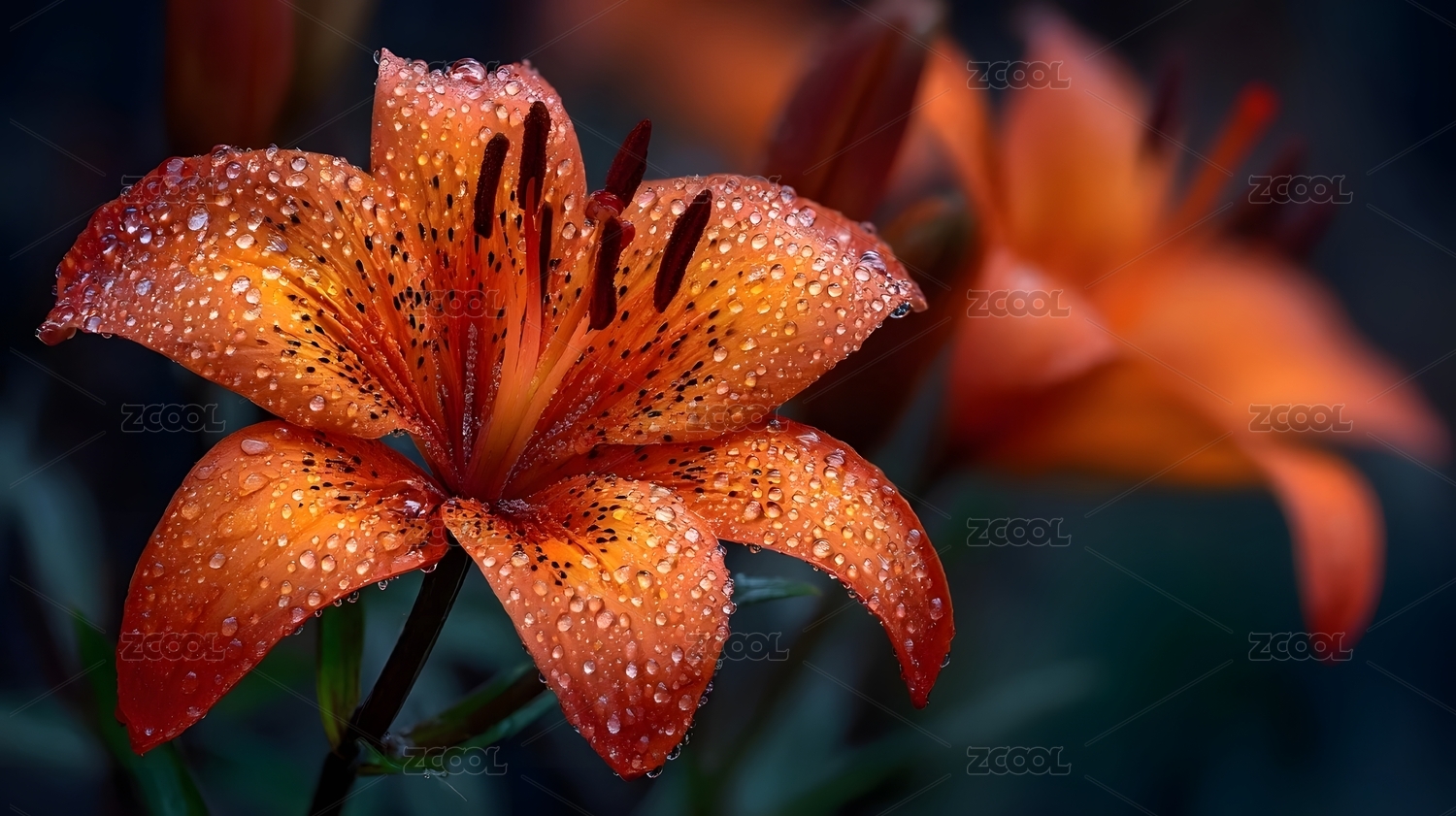 橙色百合花上的水滴