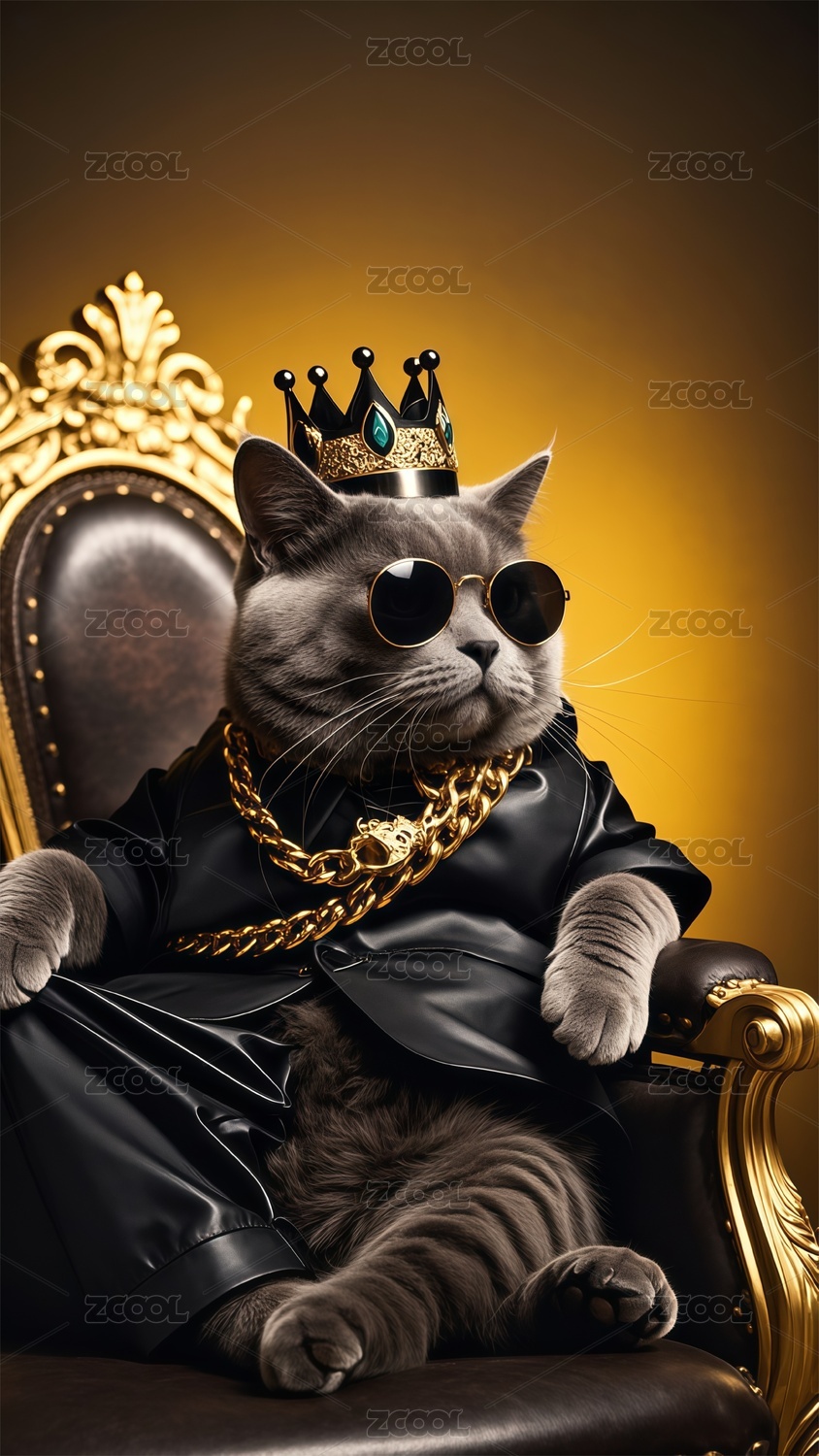 商业摄影梦幻戴墨镜皇冠的宠物猫