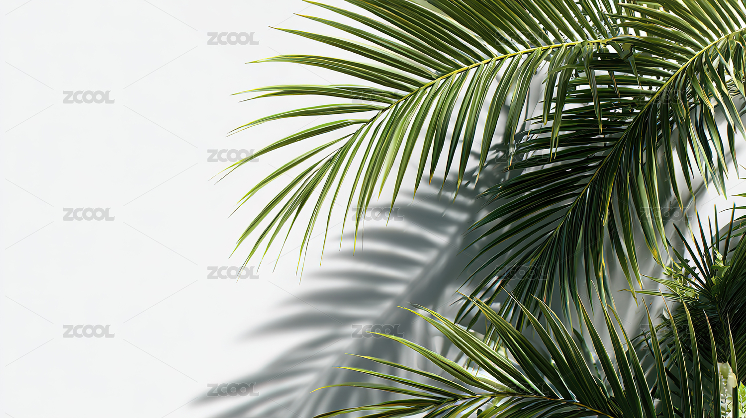 清新绿色棕榈叶留白背景