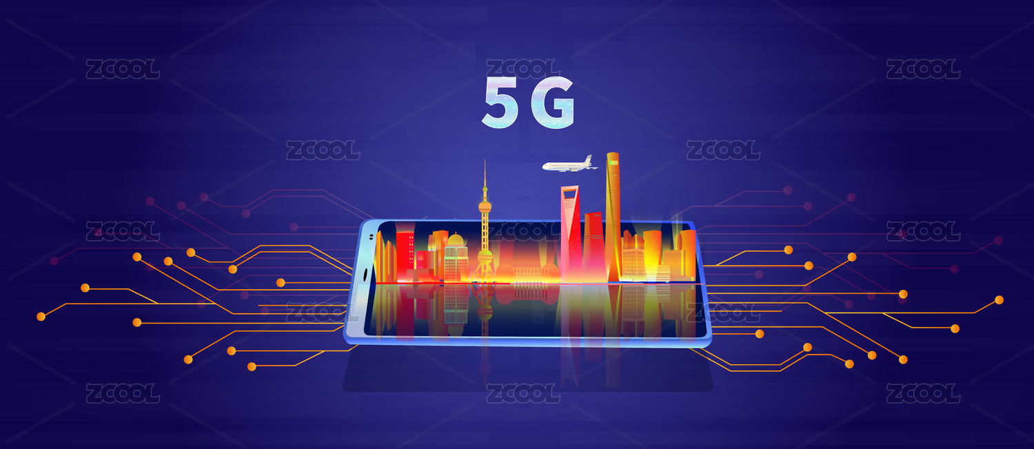 5G网络的手机数码产品,互联网连接技术信息时代插画背景海报
