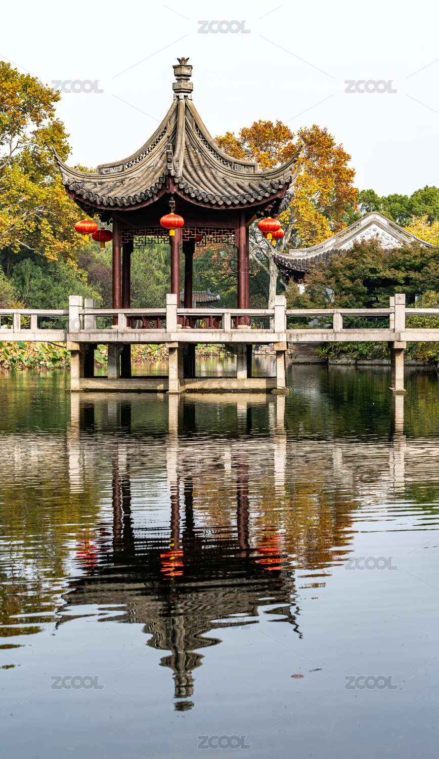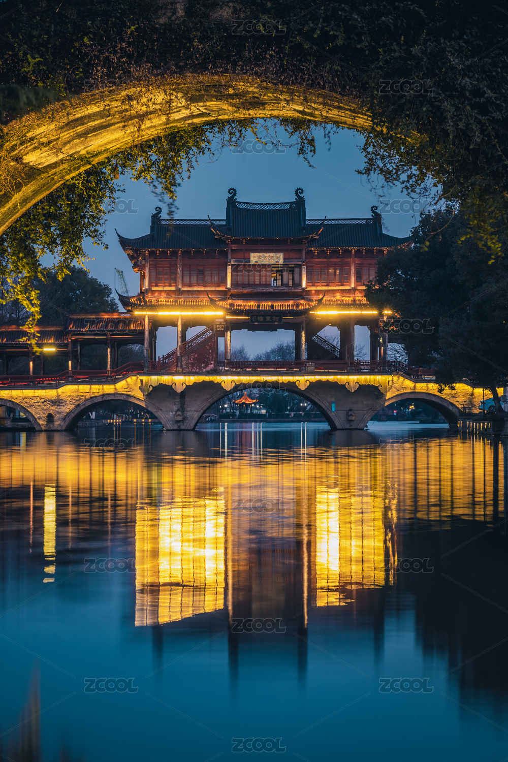 中式园林公园亭台楼阁拱桥的结合——重庆晚