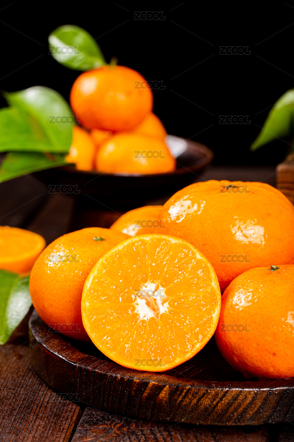 木底上放着红橘和红橘切面