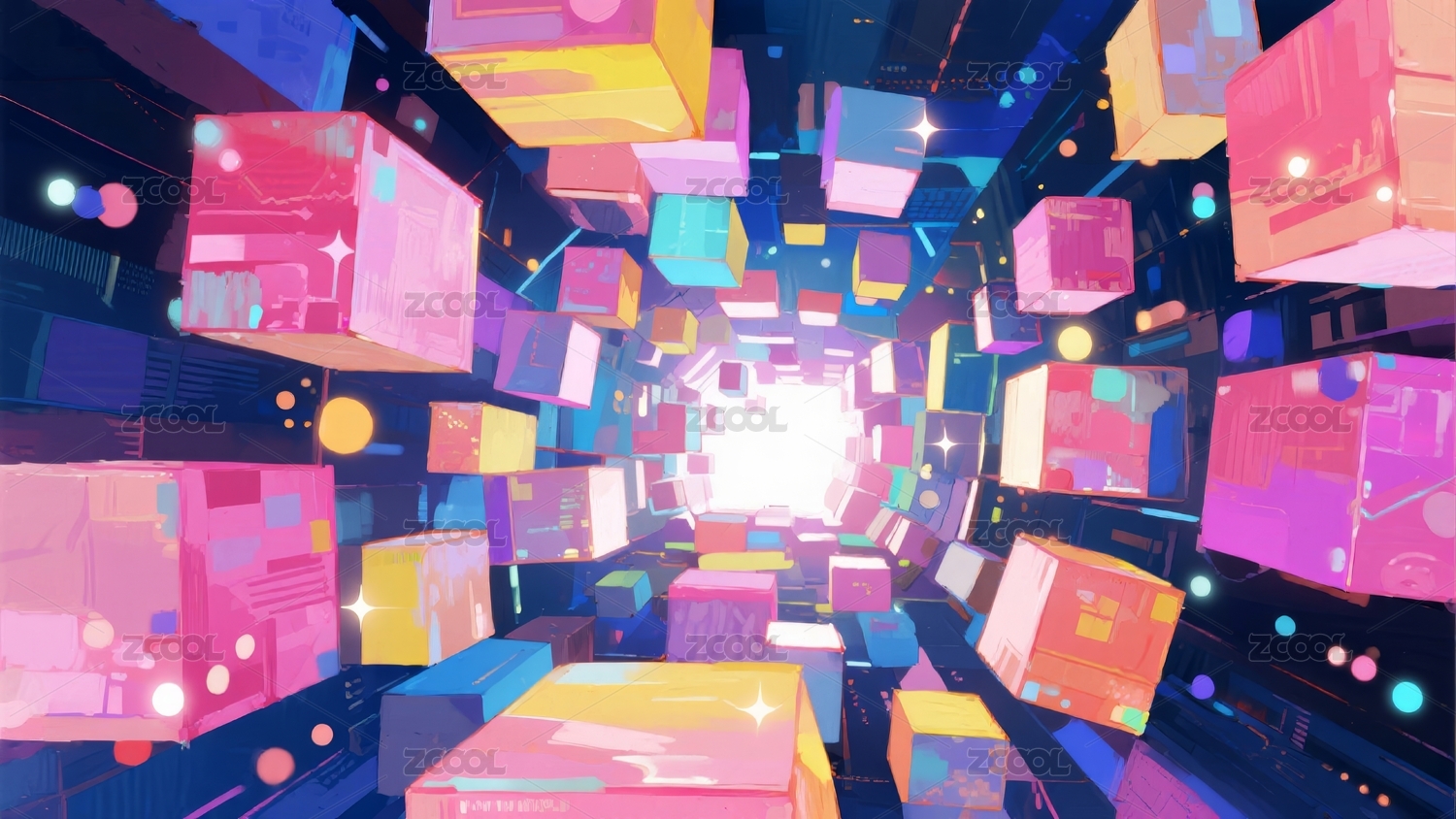 数码彩色玻璃霓虹灯抽象图形海报背景