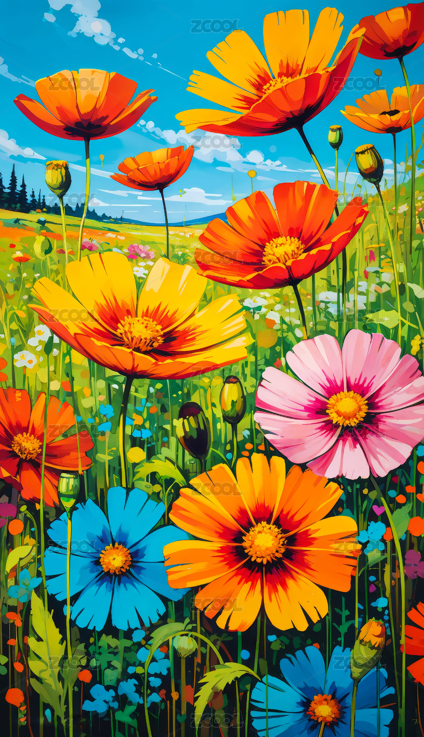 复古,云彩,蓝色,天空,花卉,植物,自然,图案,艺术,油画