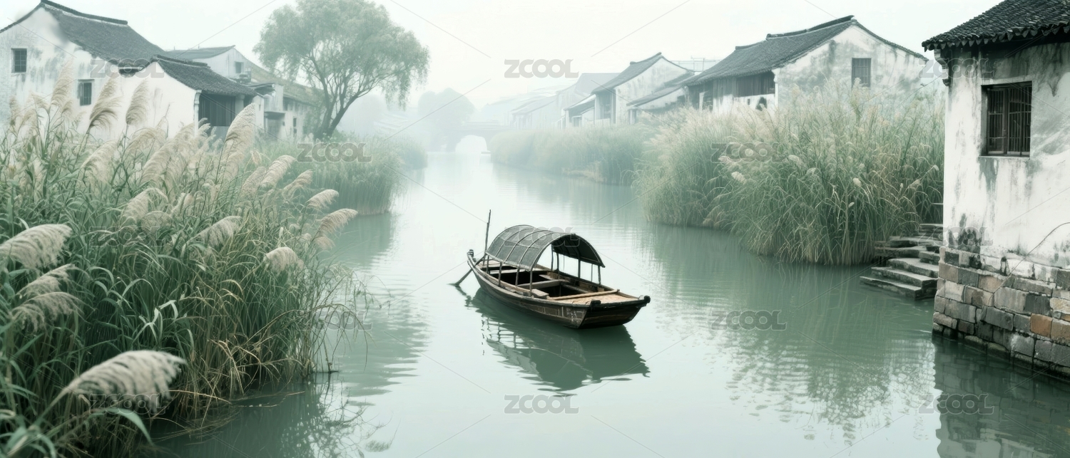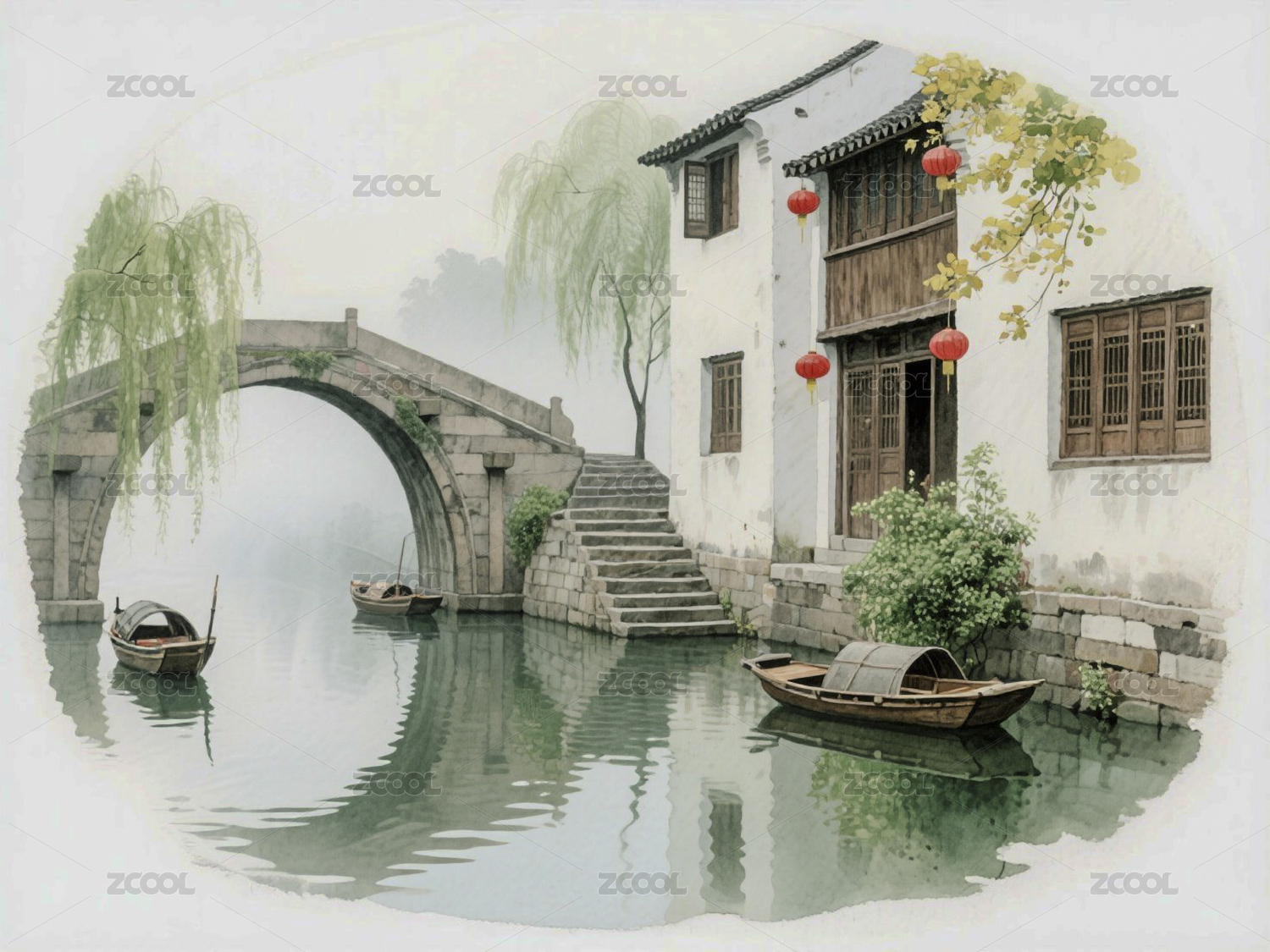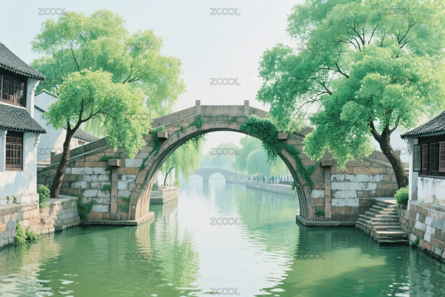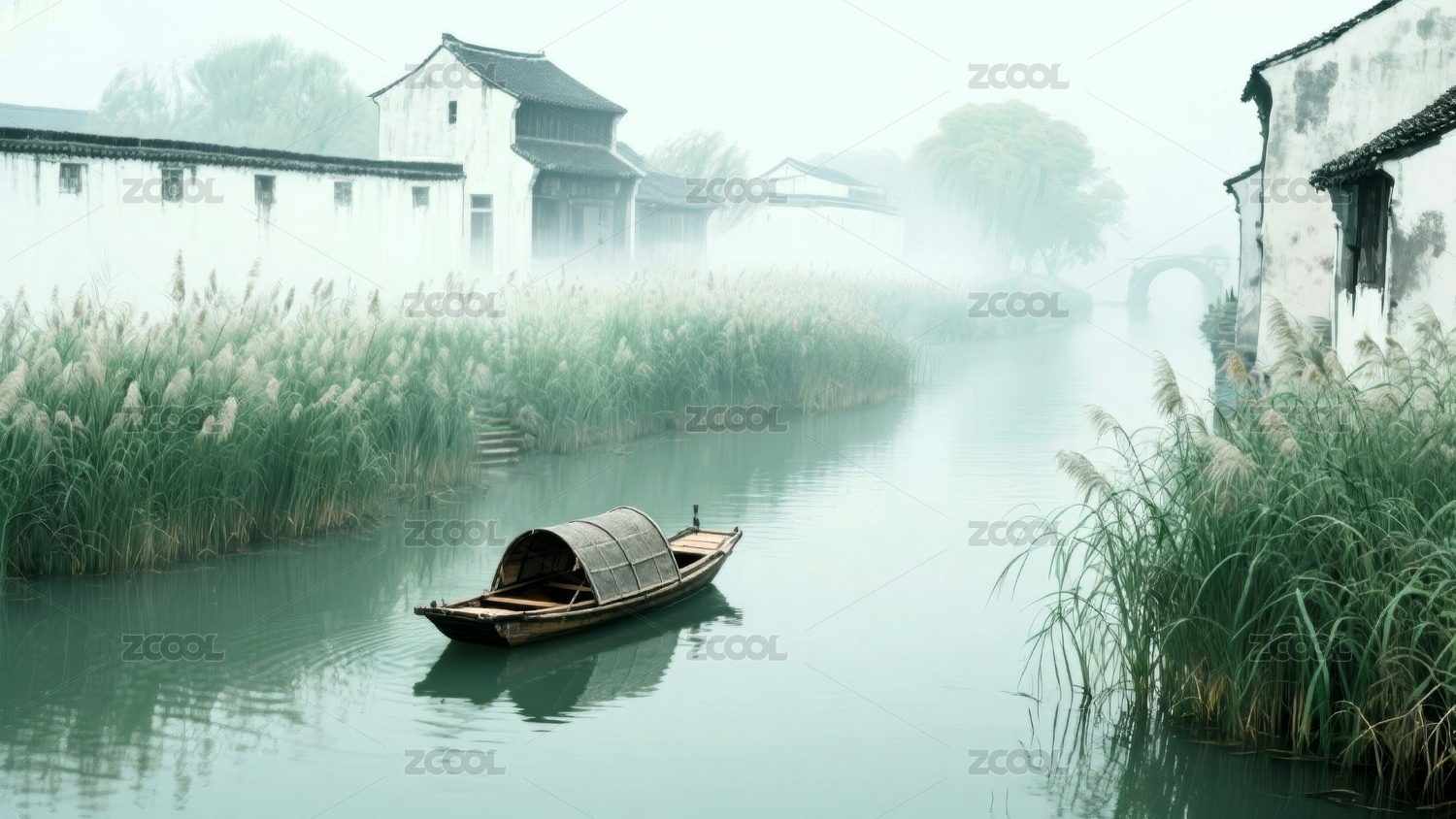 AI,插画,绘画,背景,壁纸,平面,装饰画,湖,河流,江南