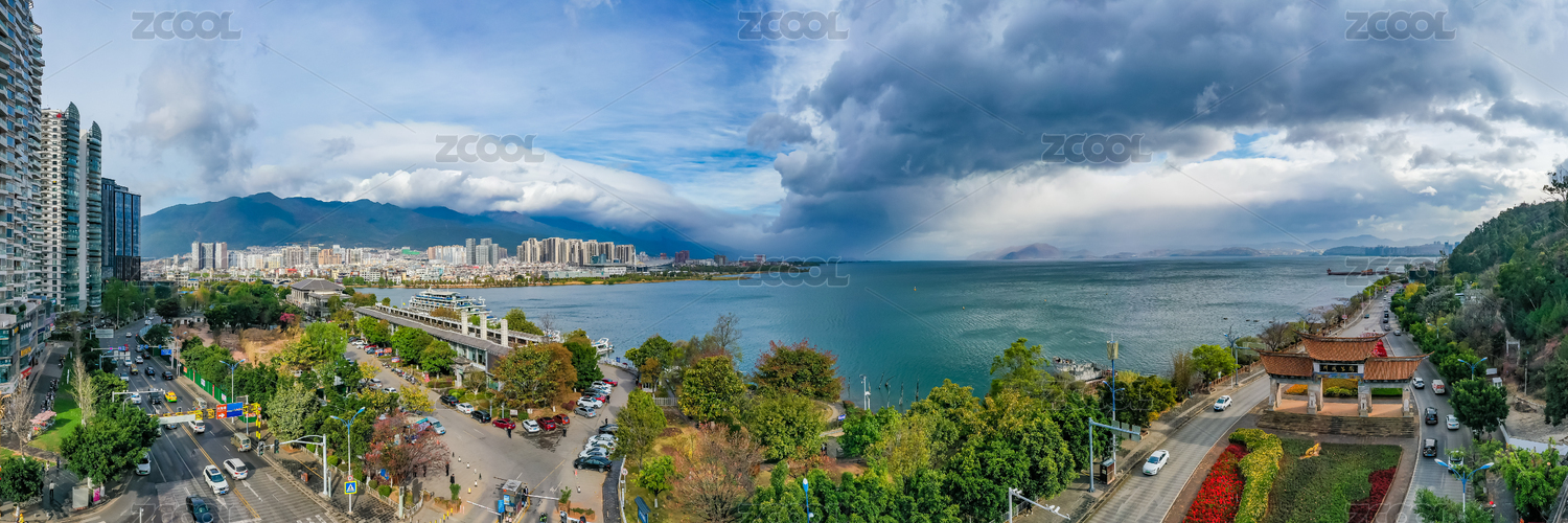 航拍云南大理洱海公园牌坊城市地标旅游景区