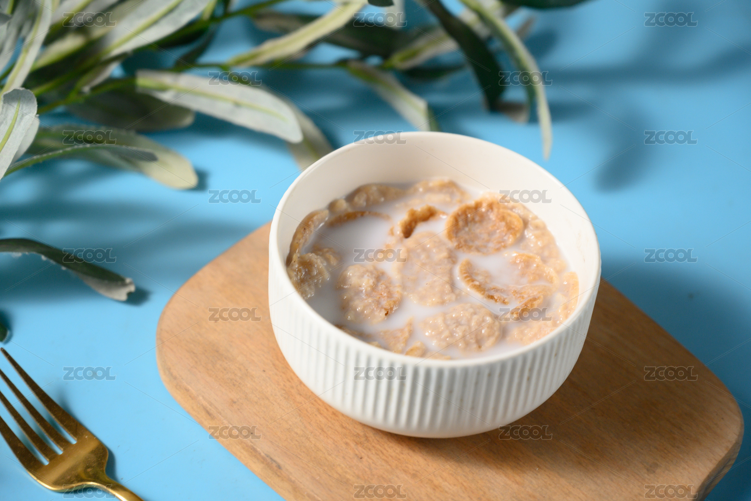 桌面上的碗里美味可口的牛奶荞麦麦片