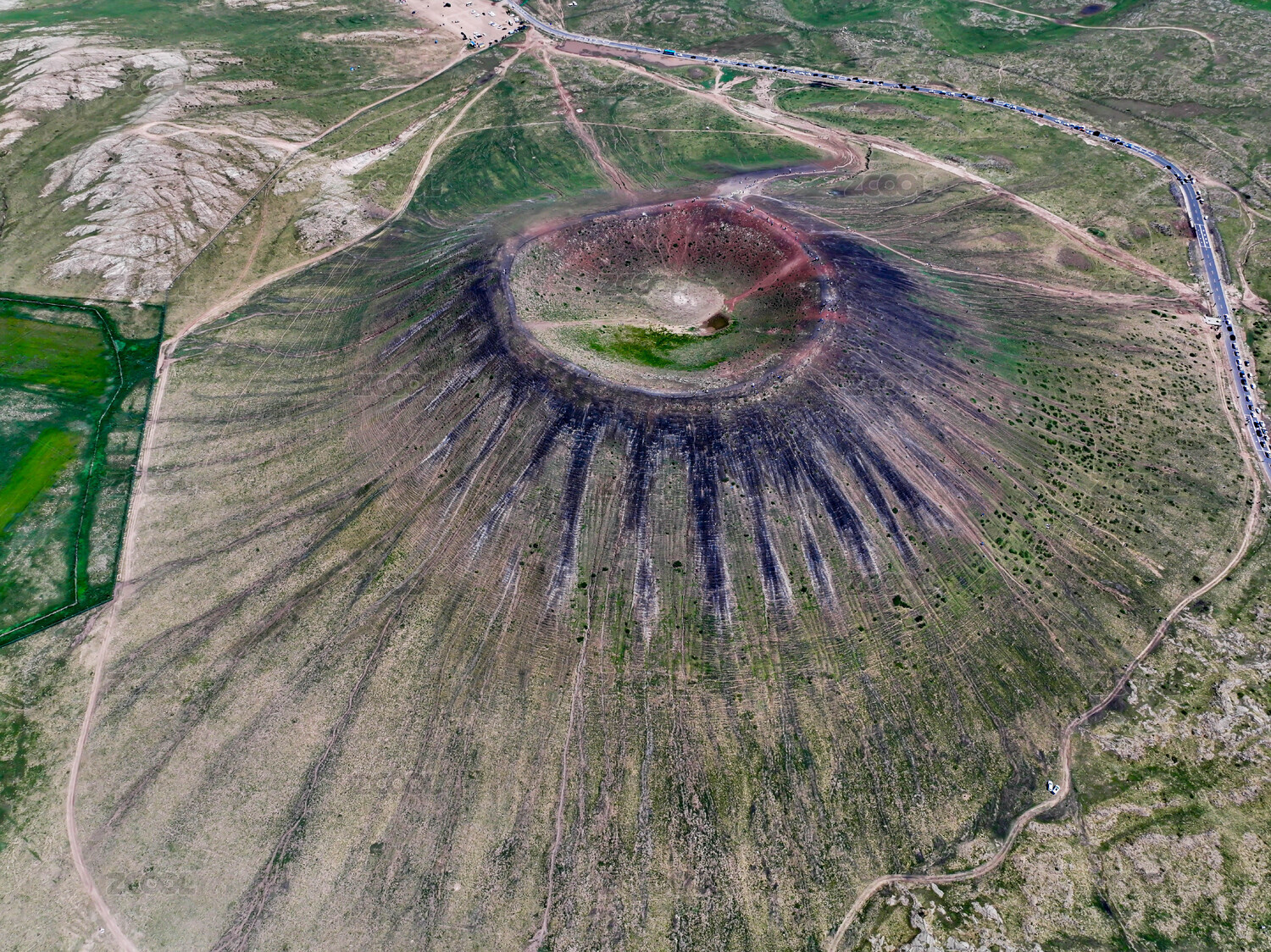 中国内蒙古乌兰察布市乌兰哈达火山地质公园航拍火山