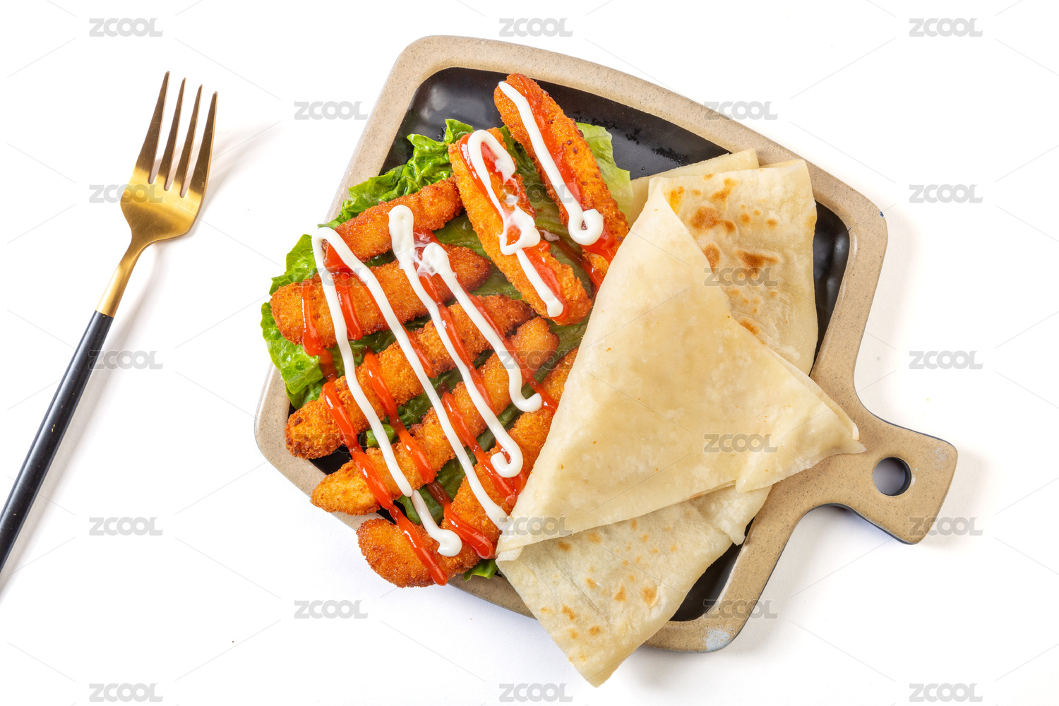 大饼卷鸡柳,煎饼,卷饼,大饼,香酥鸡柳,香酥鸡柳卷饼,天津小吃,早餐,美食,大饼卷一切