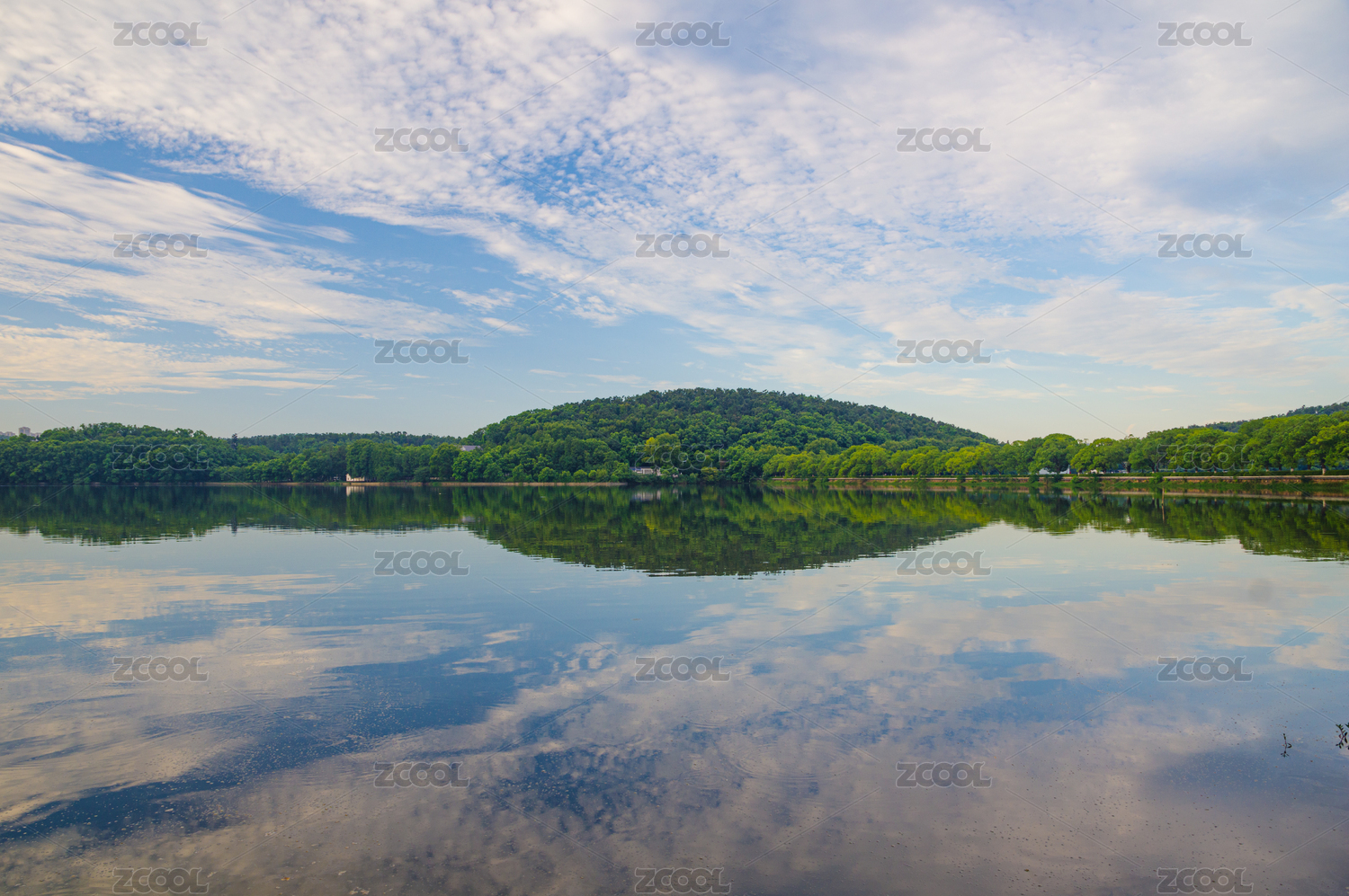 蓝天下四川省绵阳市沉抗水库仙海风光
