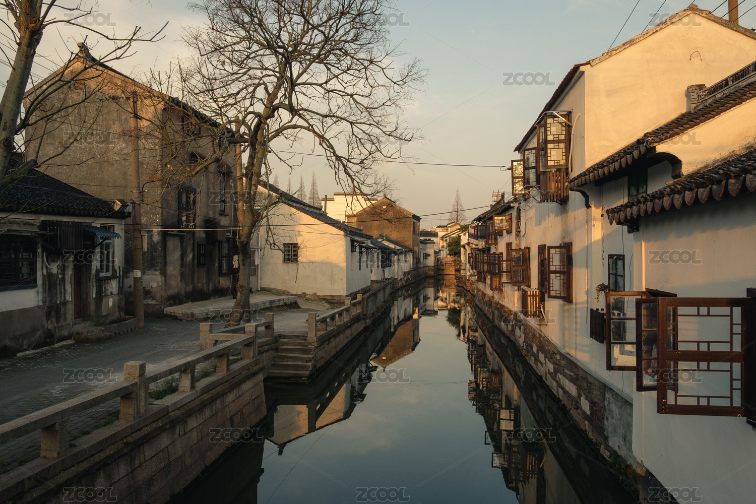 上海罗店古镇|阳光照亮河边的徽式复古建筑
