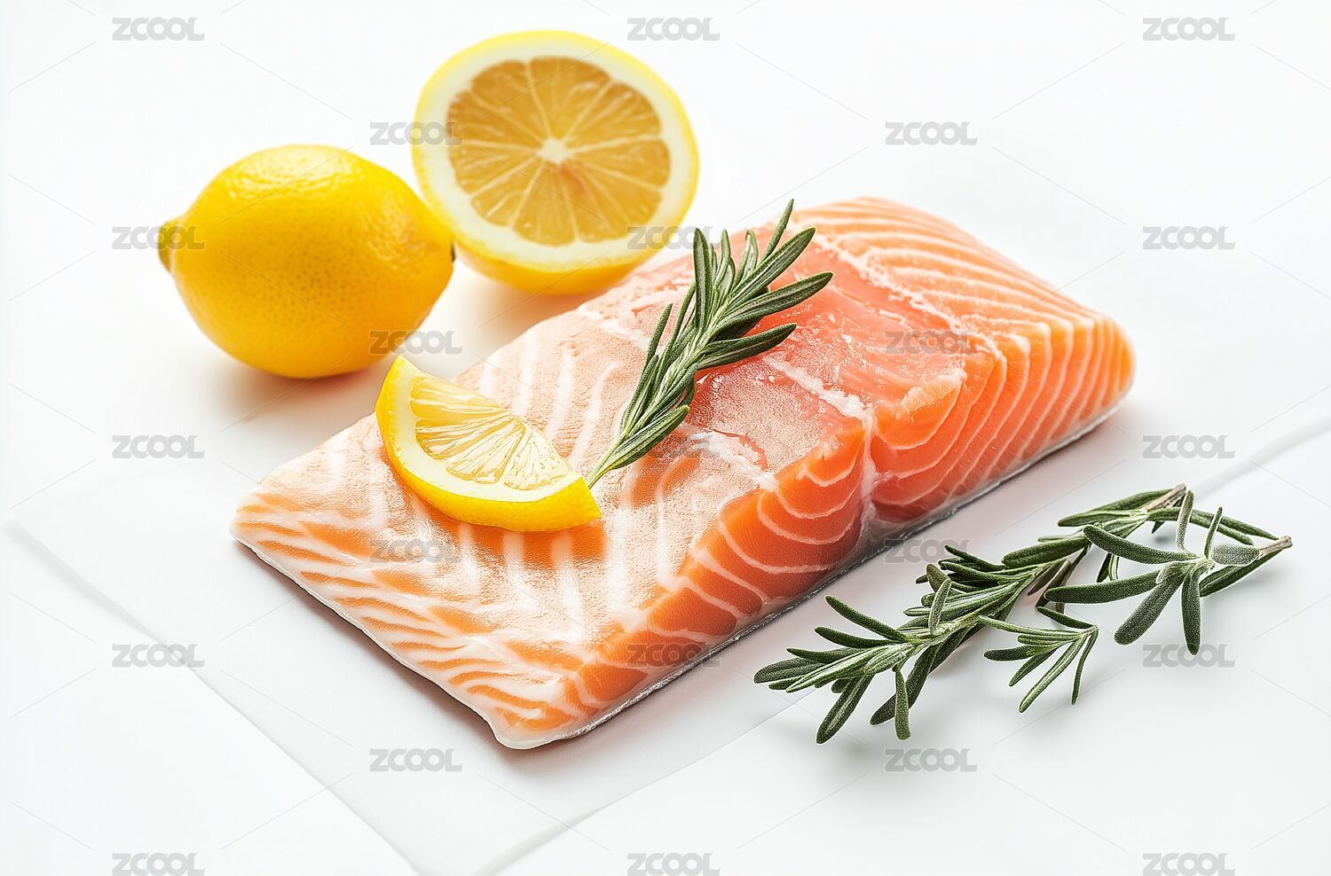 三文鱼,鲣鱼,金枪鱼,鱼块,背景,白色背景,迷迭香