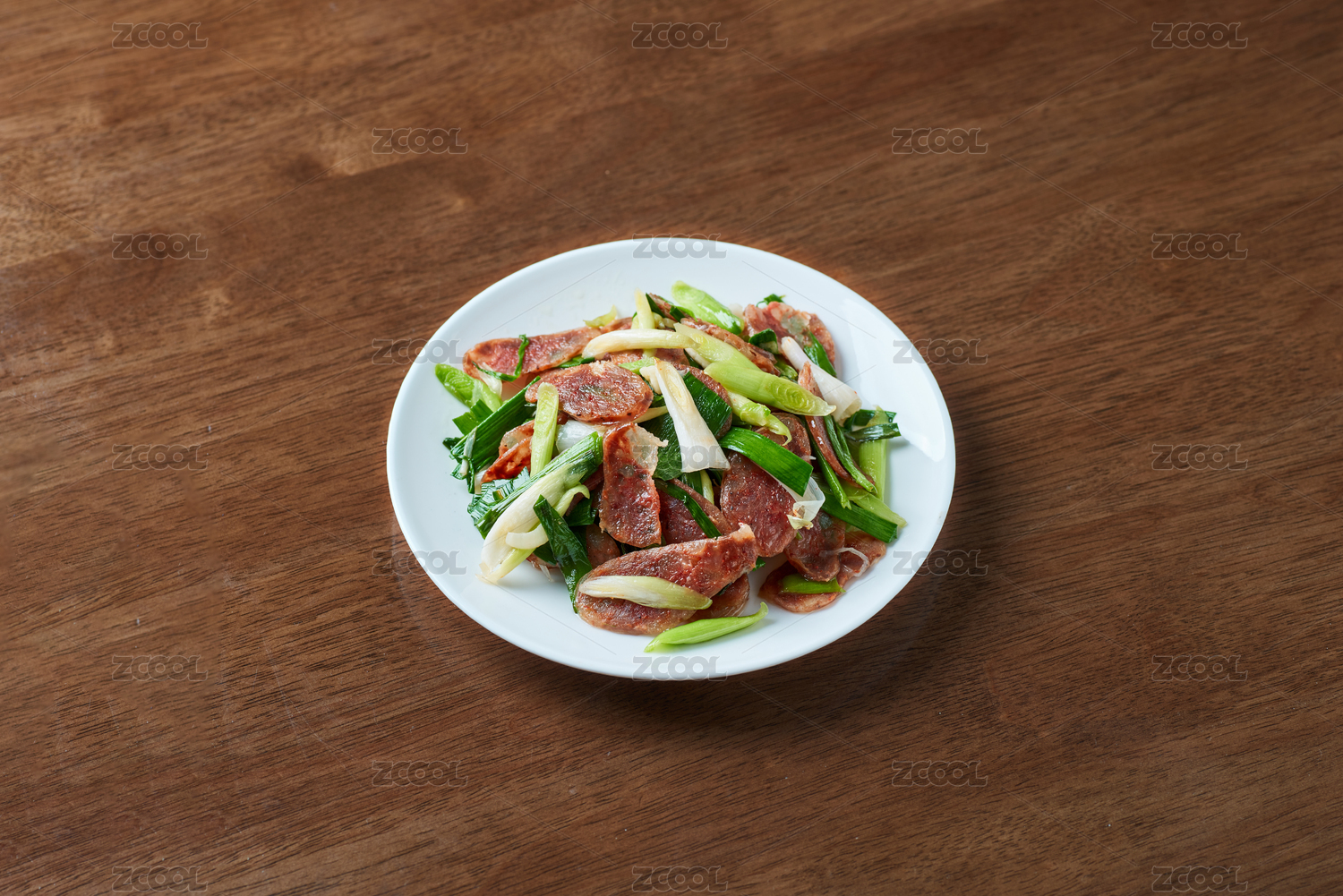 蒜苗,蒜,菜肴,炒腊肠,炒腊肉,炒腊味,炒肉肠,炒香肠,大蒜,家常菜