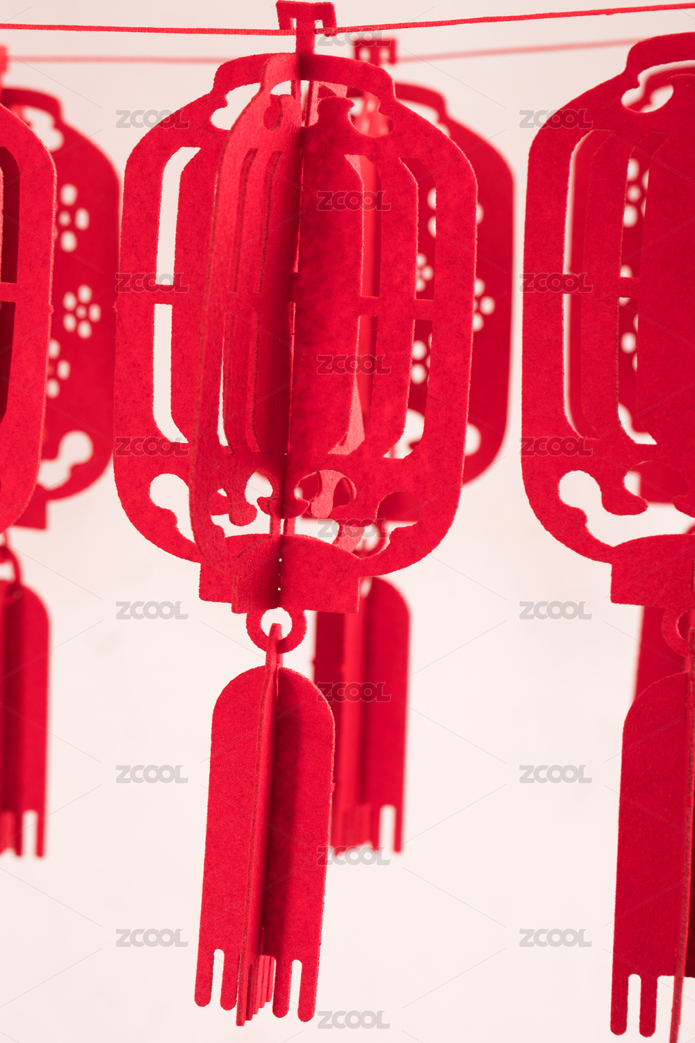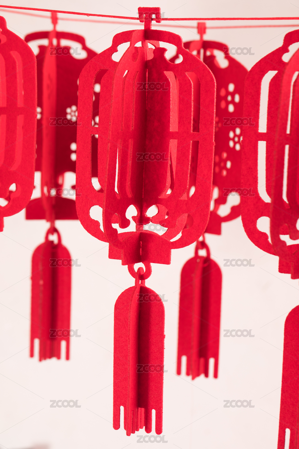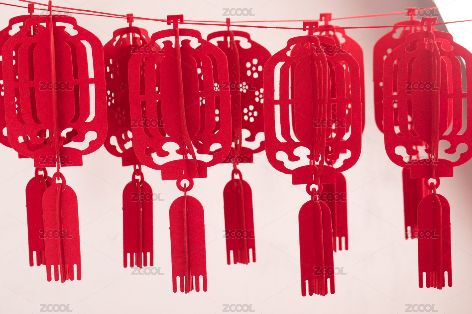 挂着的一串剪纸红灯笼