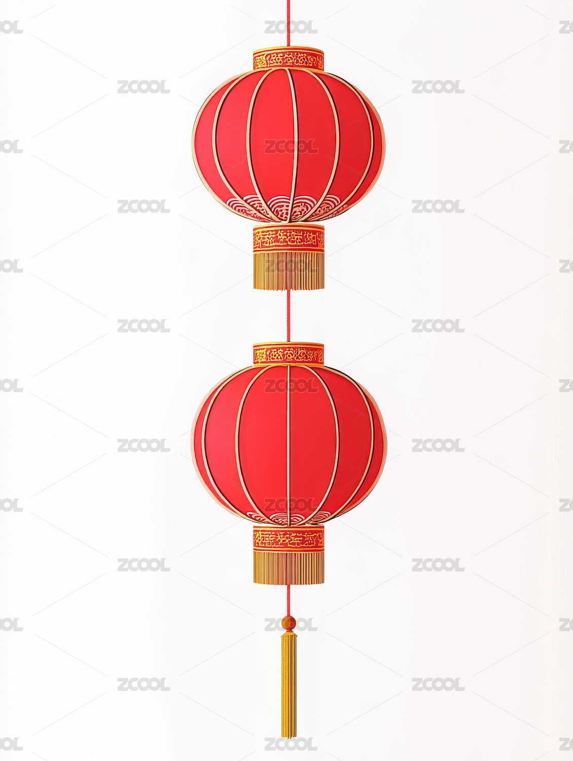 中国传统红灯笼悬挂在白色背景前
