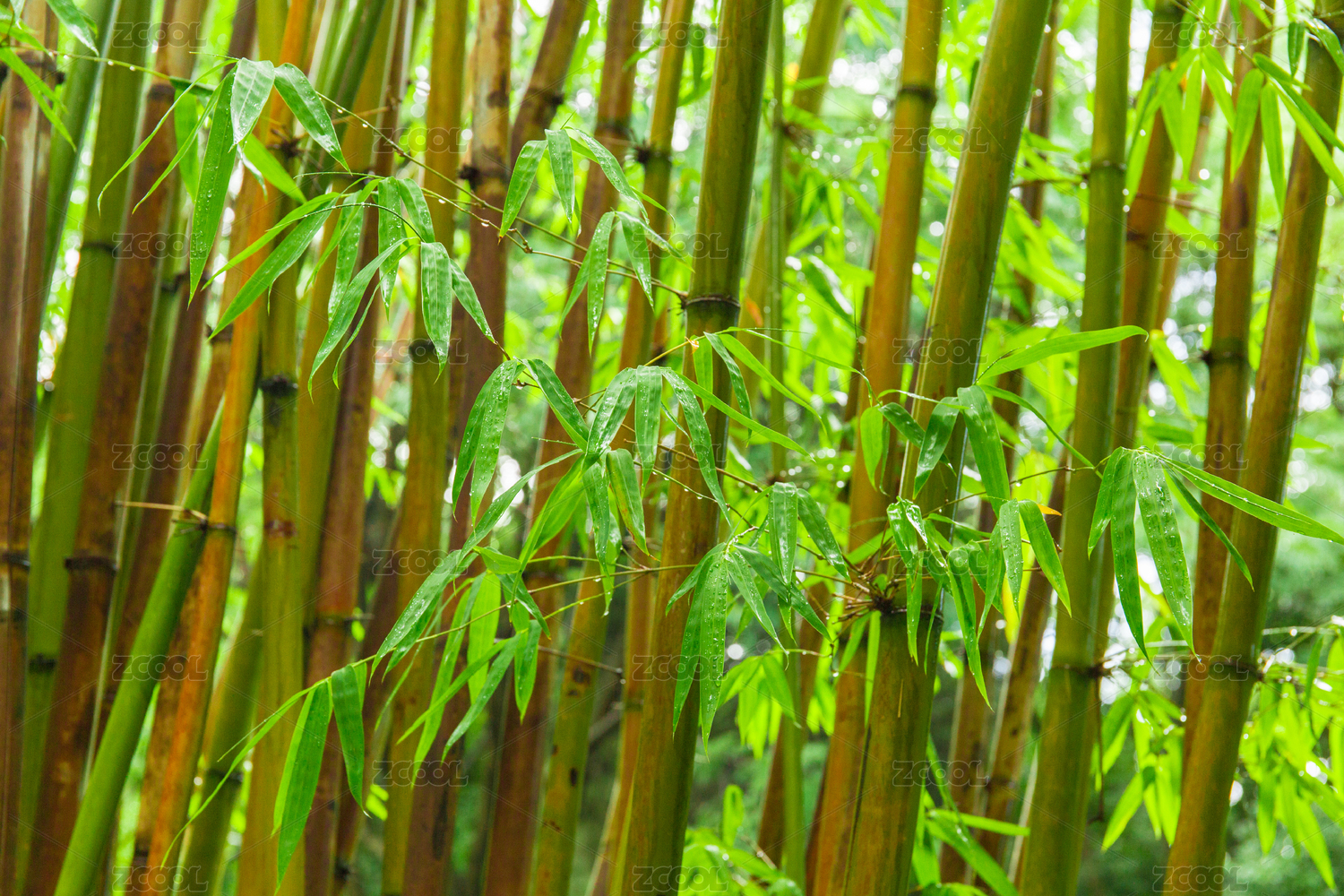 云南大理蝴蝶泉雨后公园翠绿的竹林