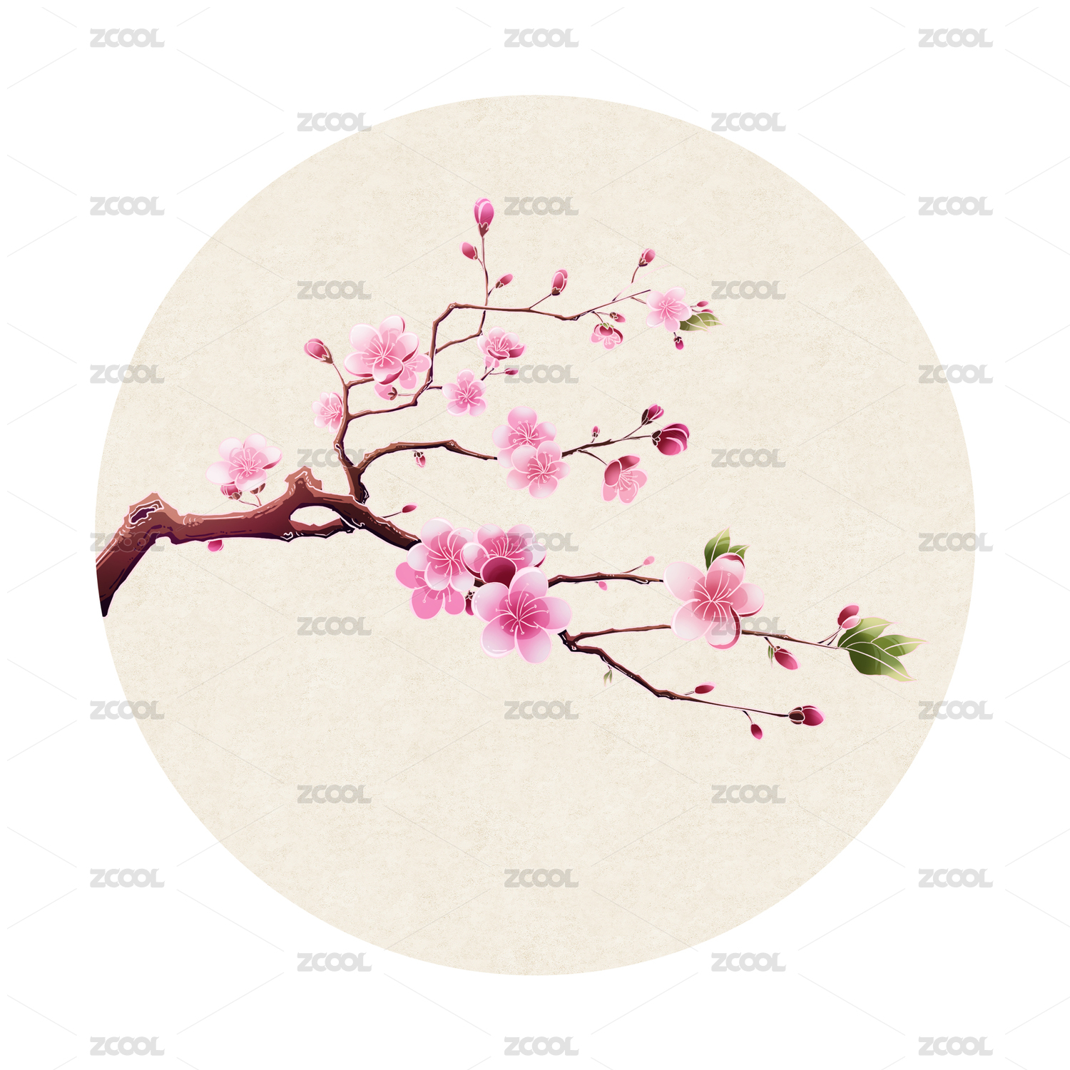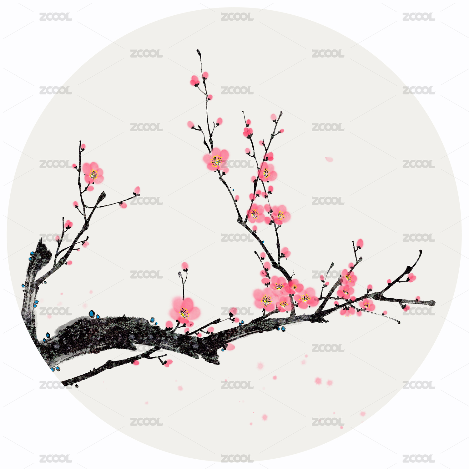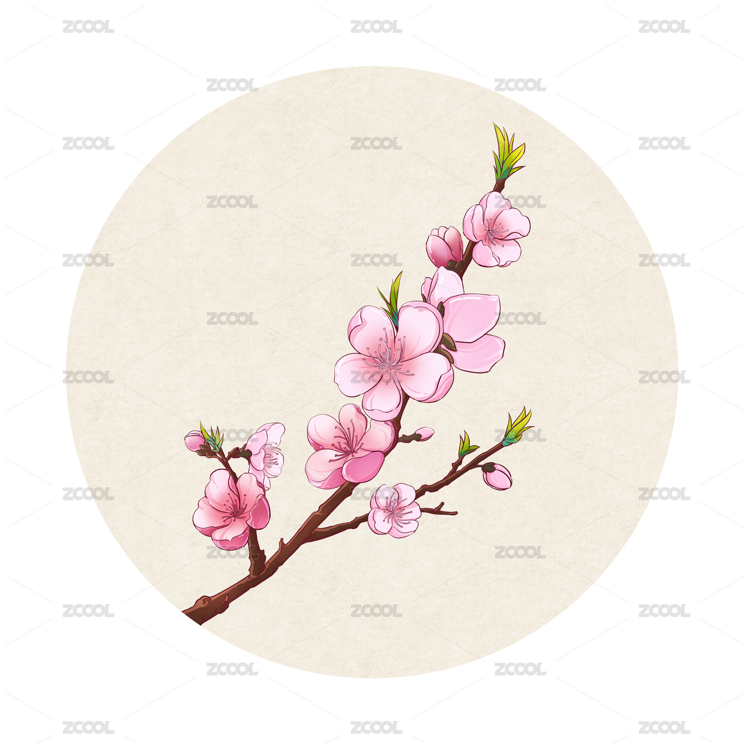 水墨水彩桃花中国风樱花桃花插画装饰画