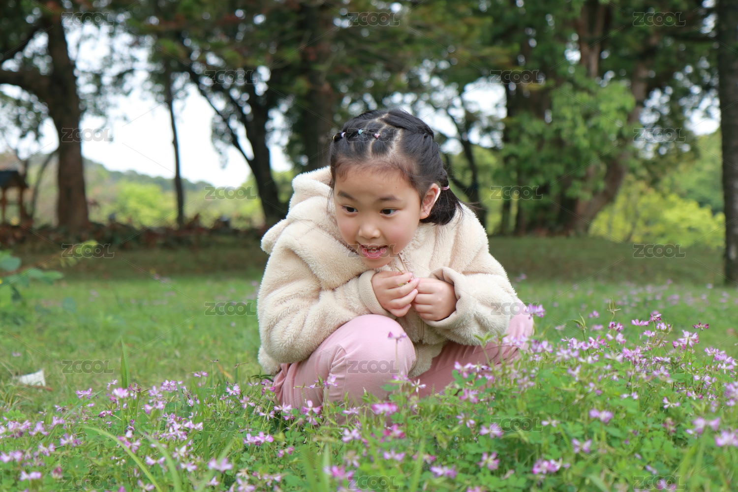 在春天的公园里玩耍的小女孩