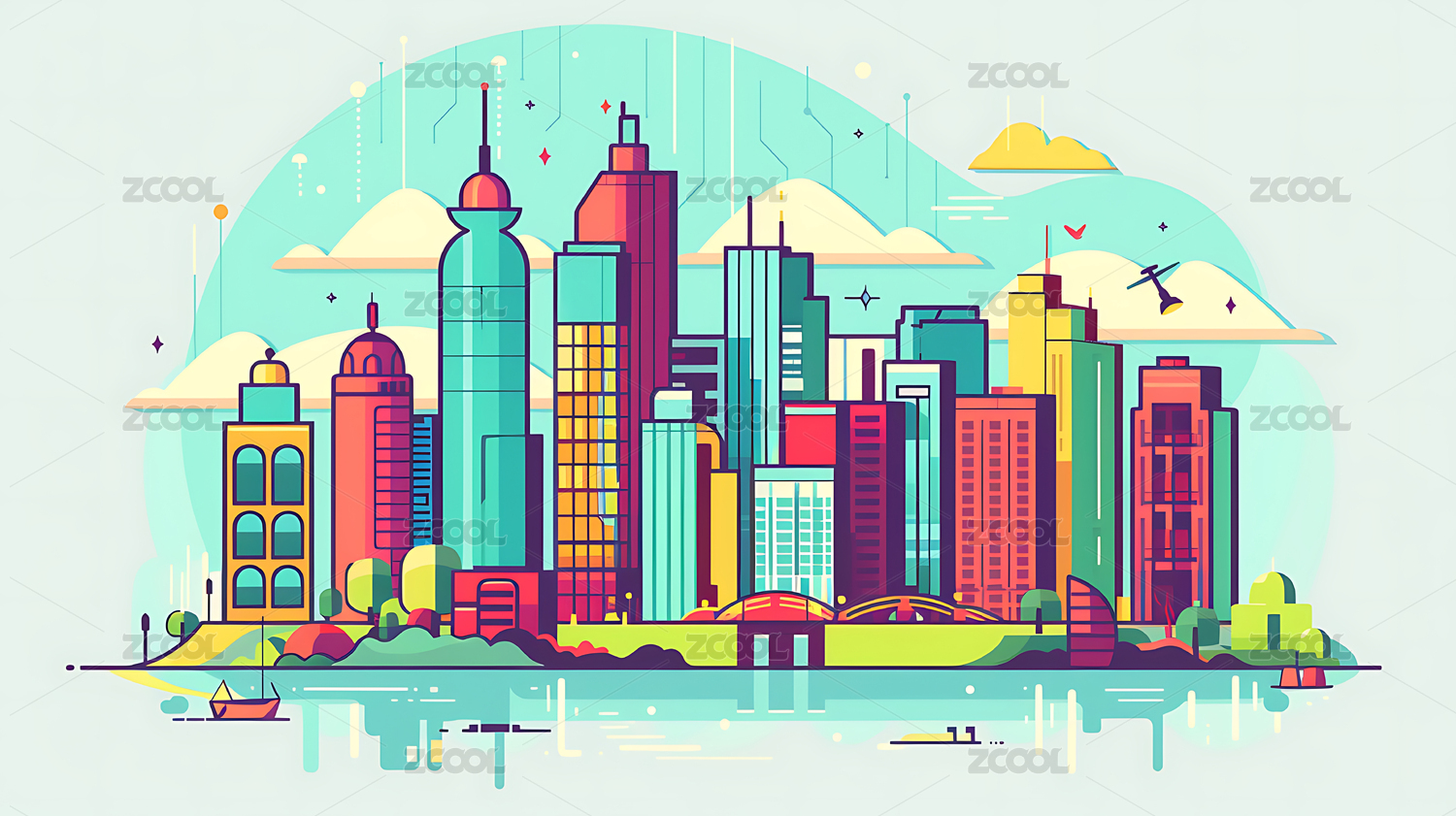 城市平面插画