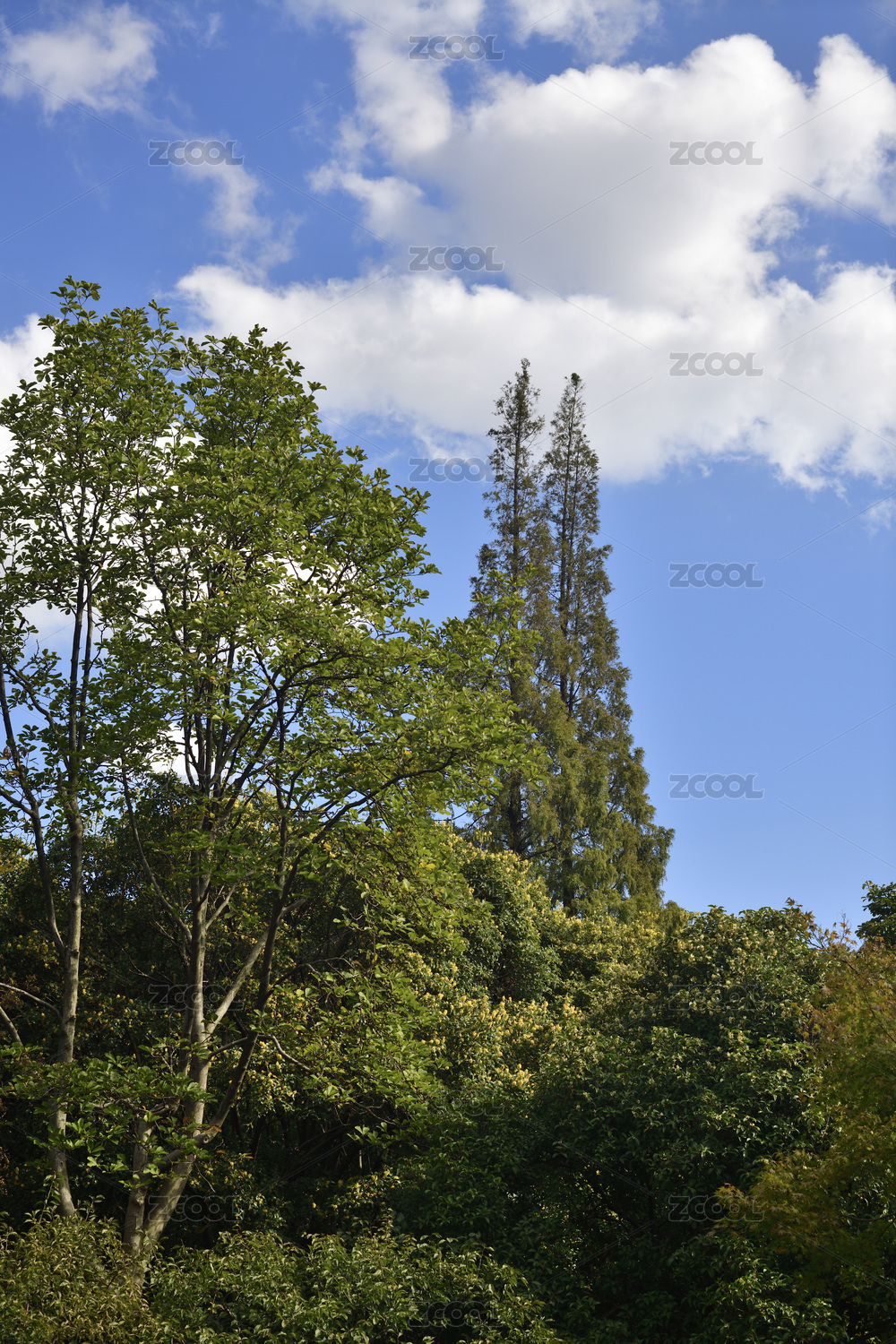 户外,白昼,秋天,天空,阳光,云,植物,树叶,蓝色,绿色