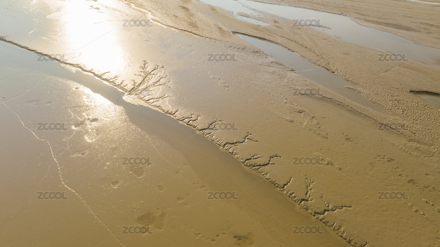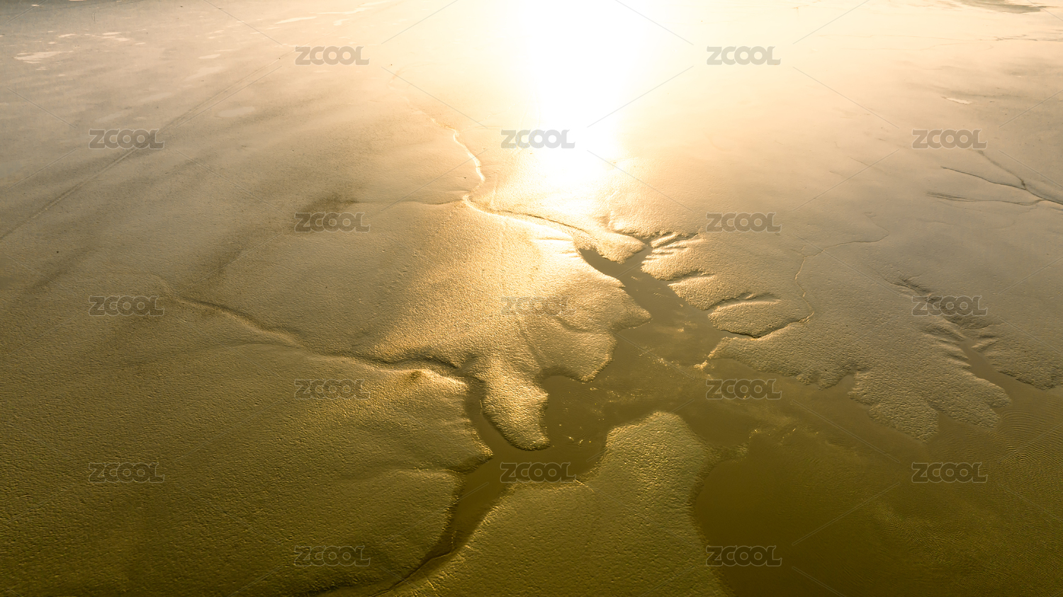 金色沙滩滩涂阳光反射唯美背景