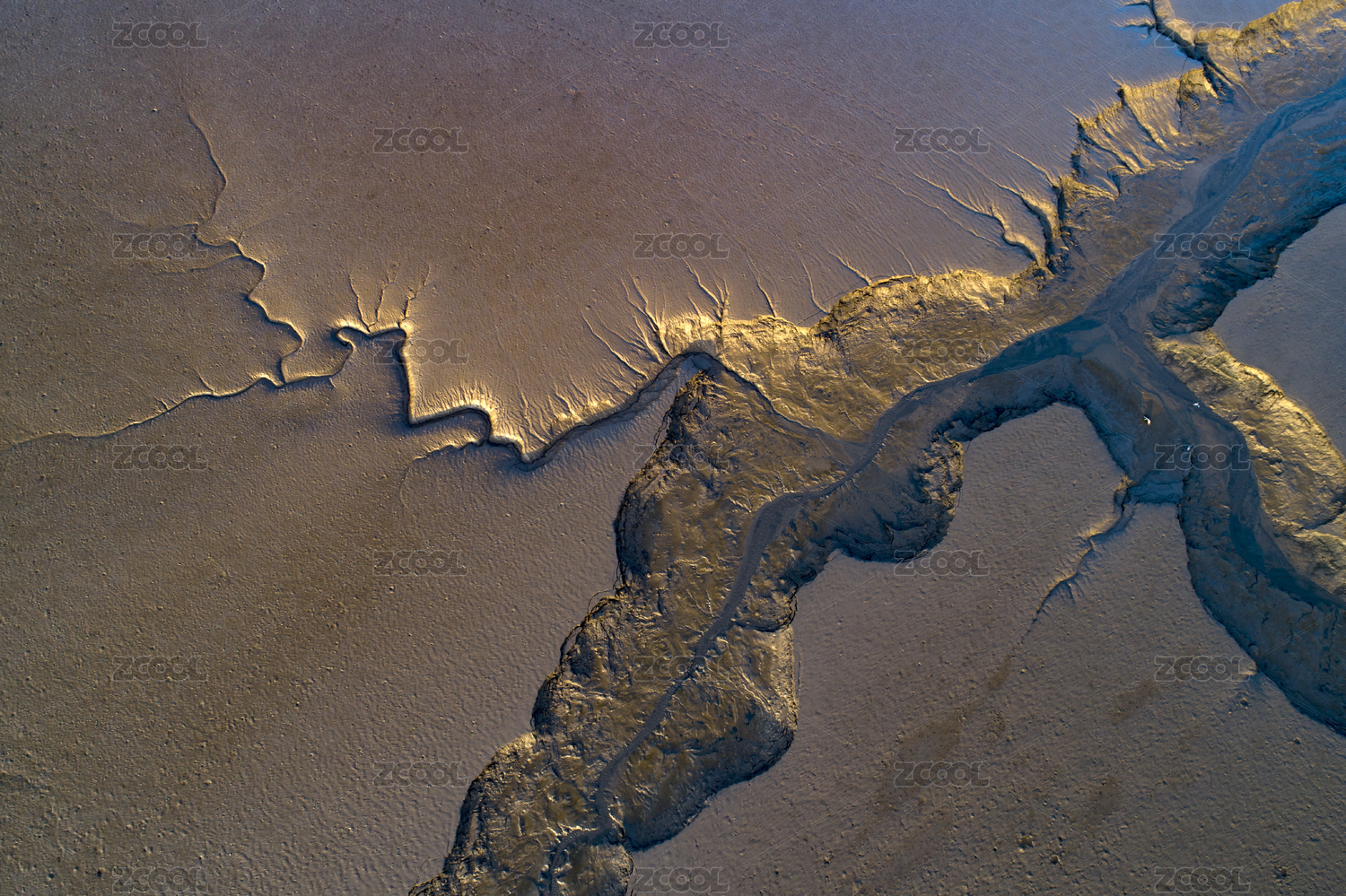 江苏张家港退潮后长江滩涂上的树状纹理