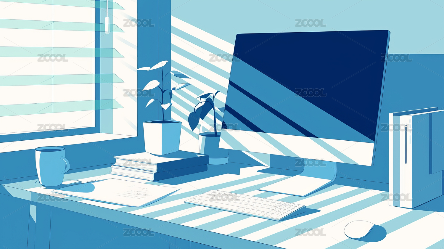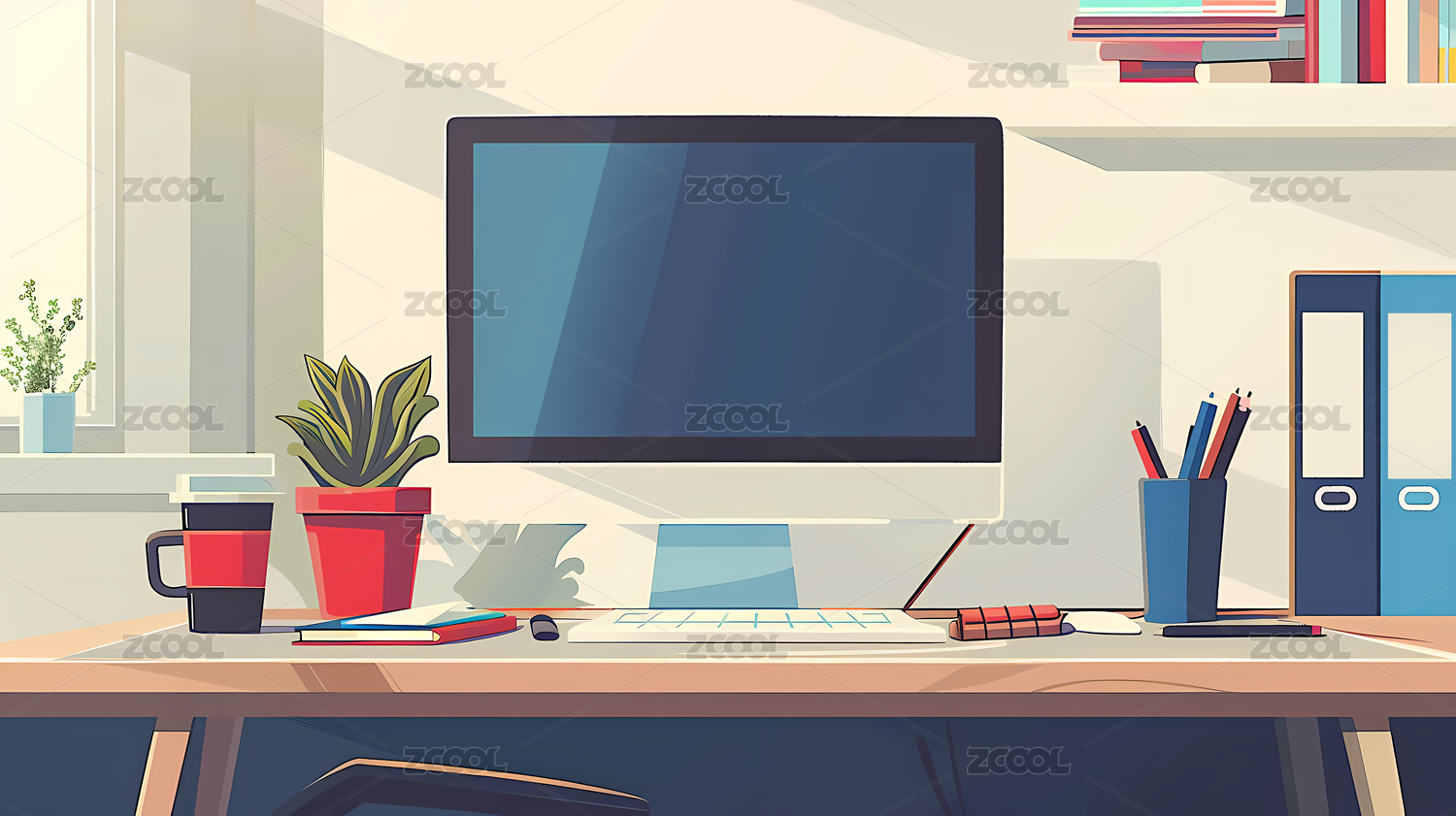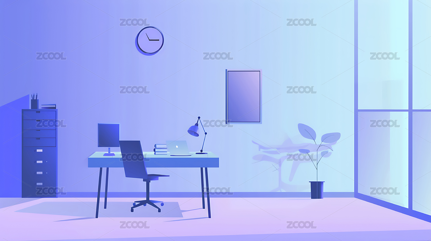 二次元漫画书房场景插画