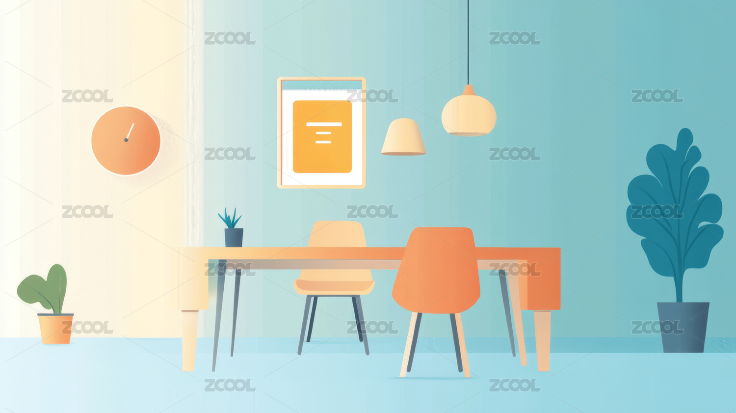 无人的会议室扁平插画