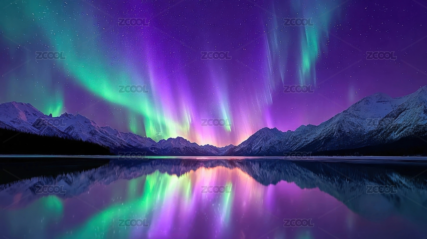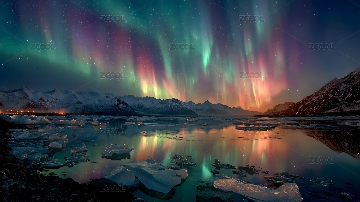 冬季,极光,星空,夜晚,风景,白雪,雪山,群山
