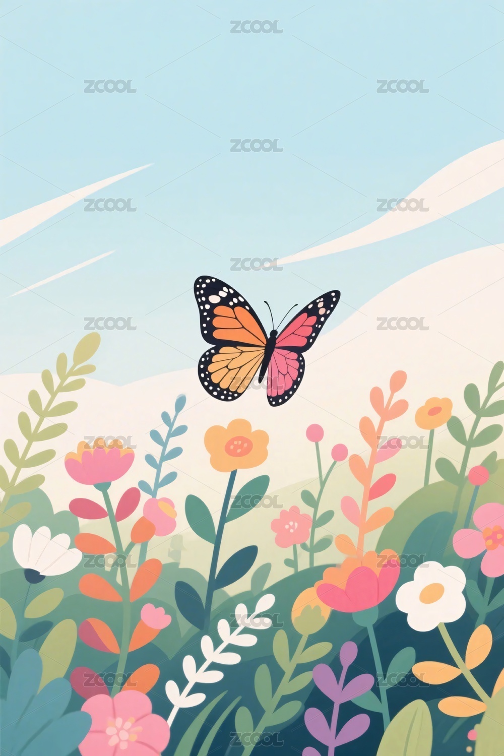 梦幻飞舞煽动翅膀的彩色蝴蝶印花图案