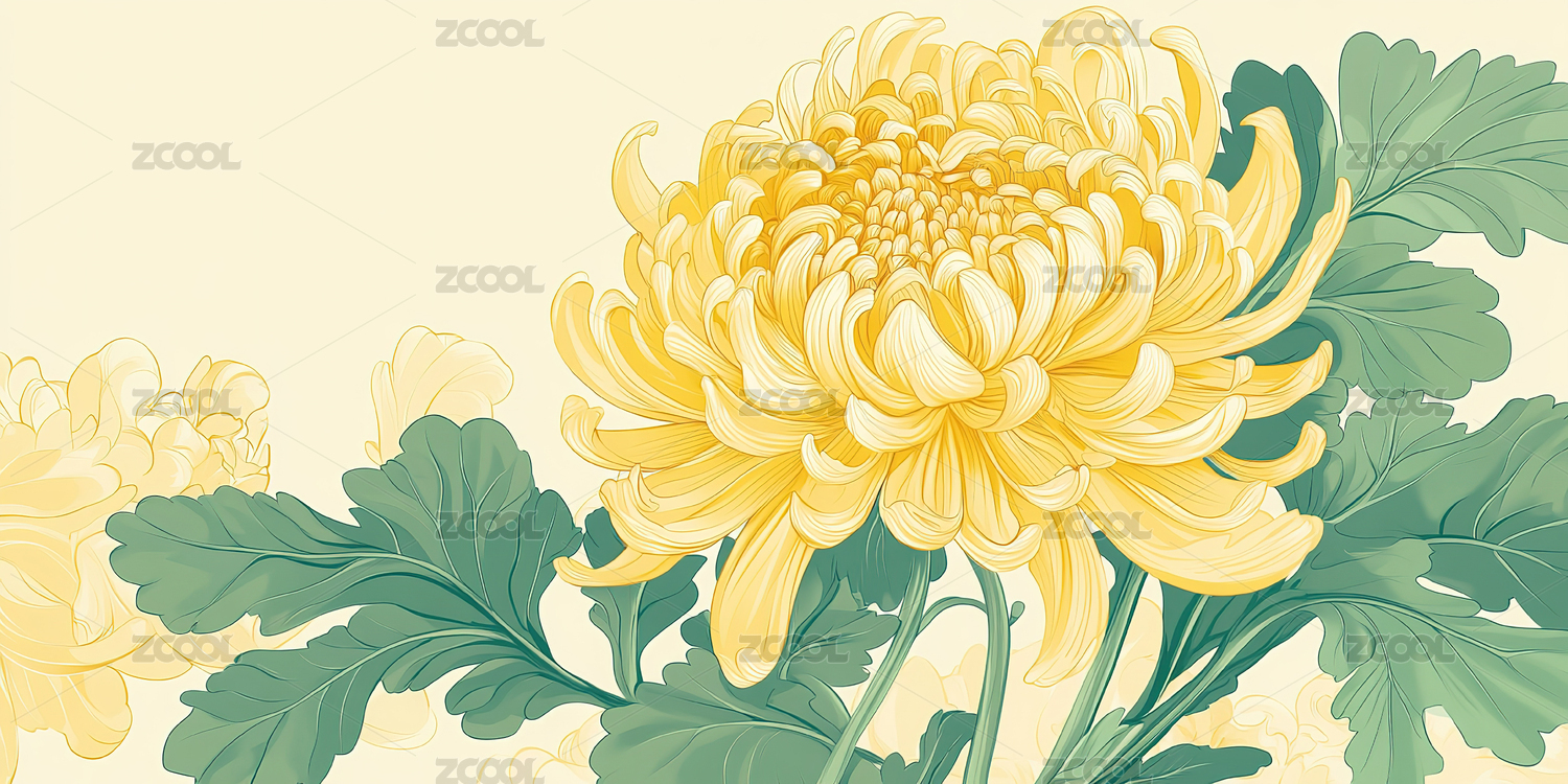 AIGCFG01,浮世绘,植物,白色,牡丹,大花,绿叶,勾线,花朵,花