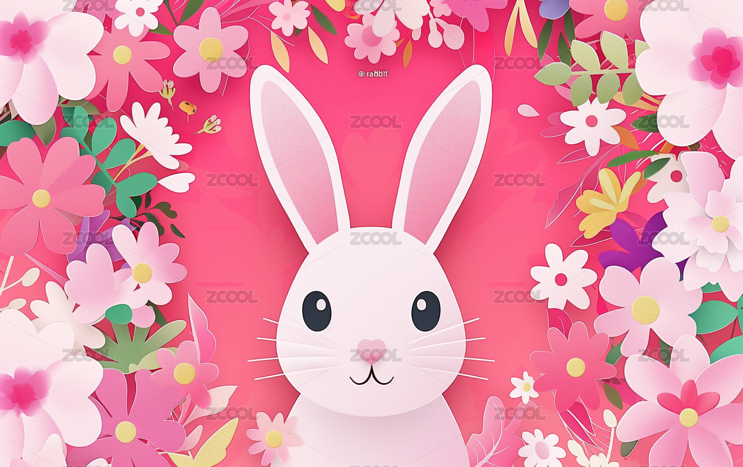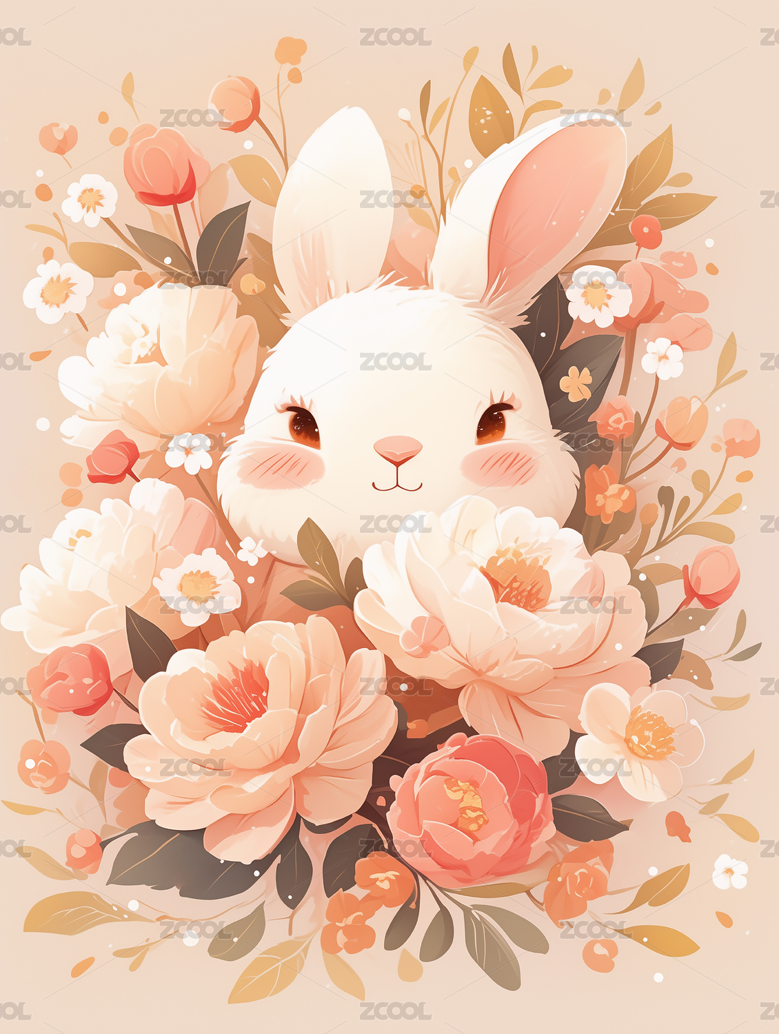 花,植物,兔子,动物,可爱,萌,卡通,插画