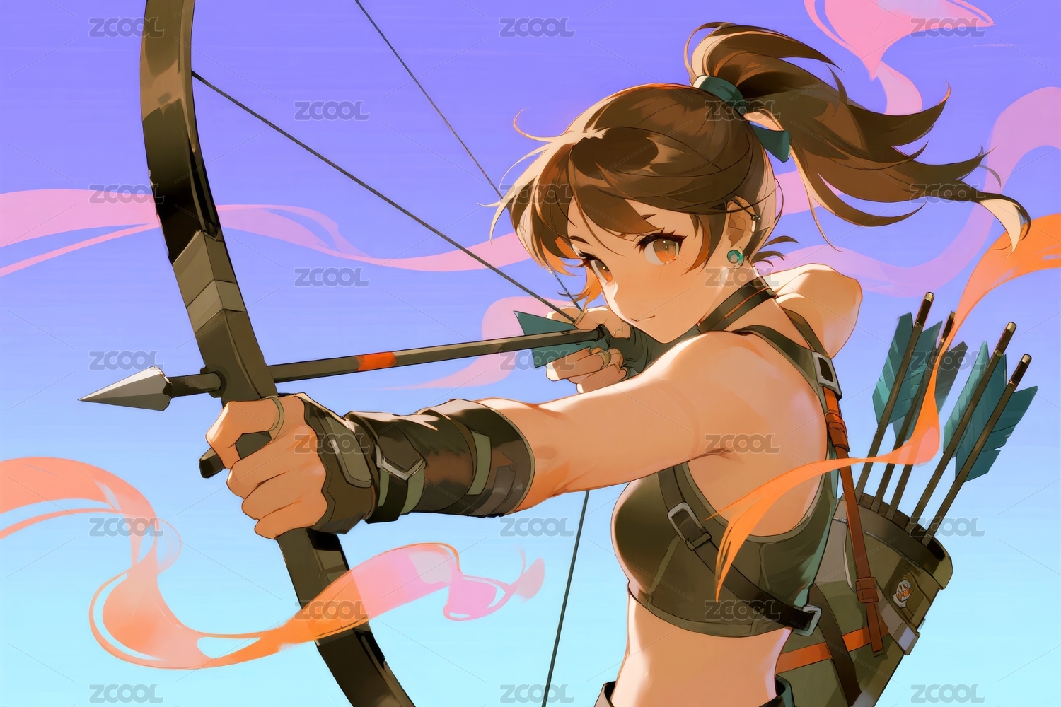 射箭比赛中拉弓的卡通女孩