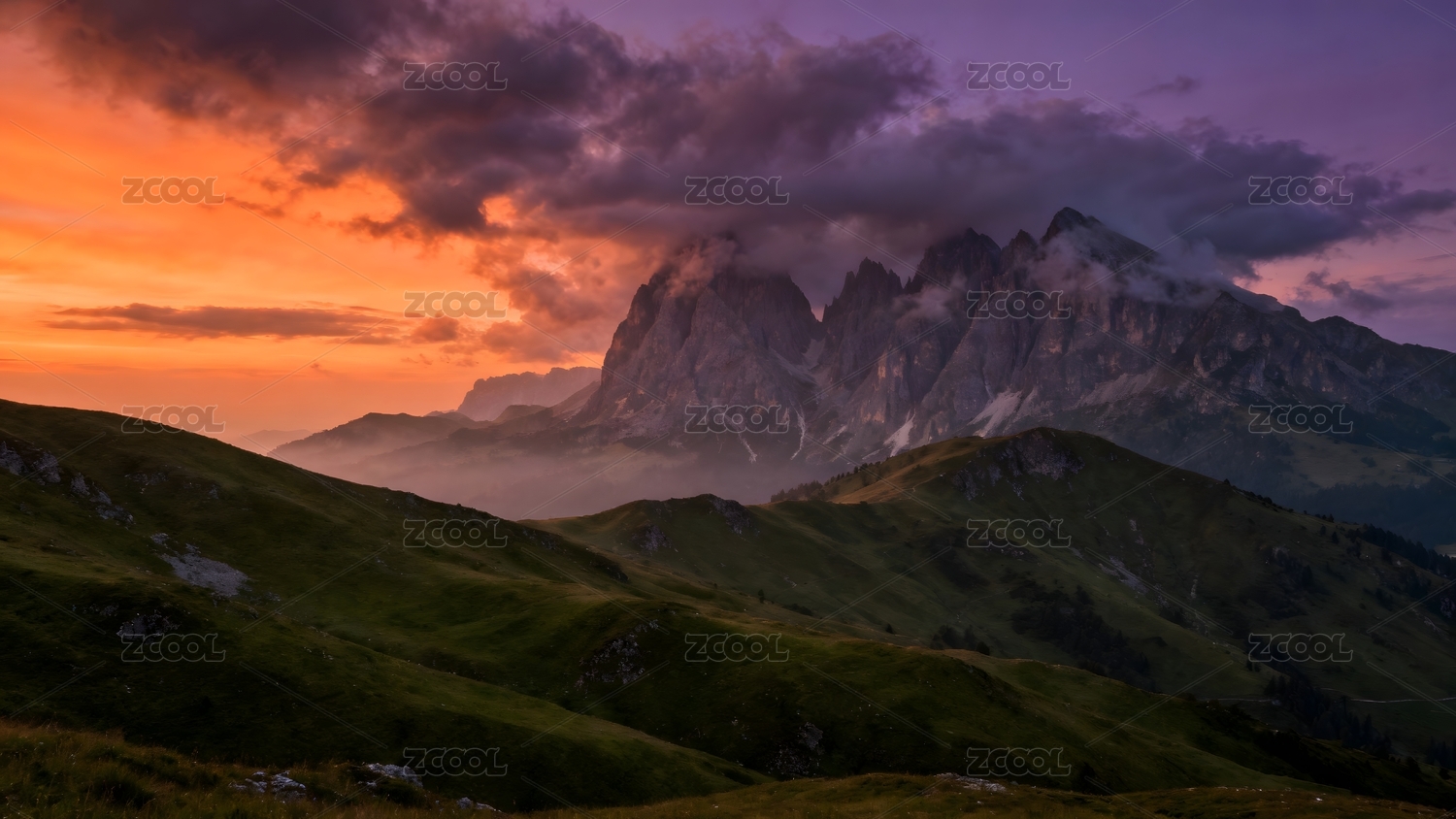 欧洲意大利多洛米蒂苏西高原自然风景,日出景观