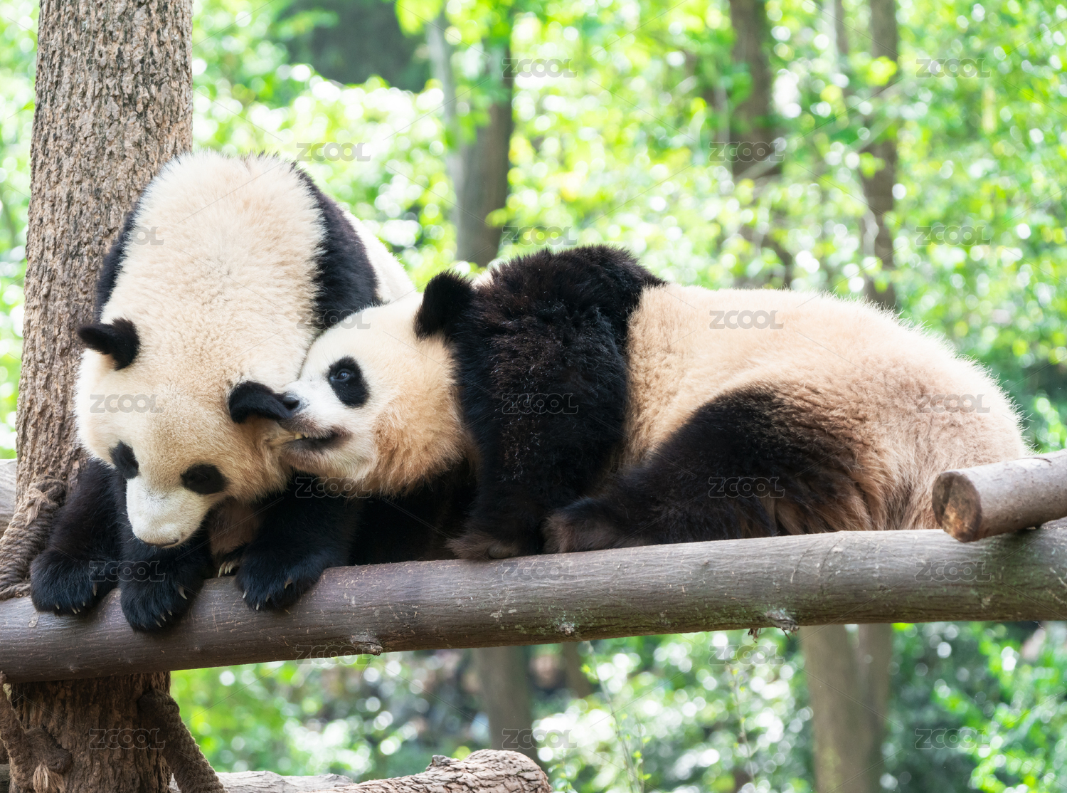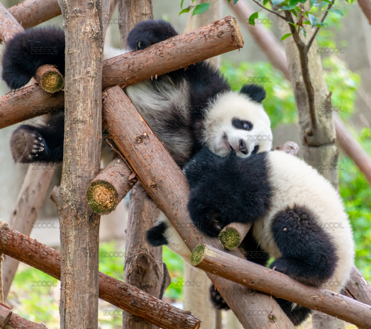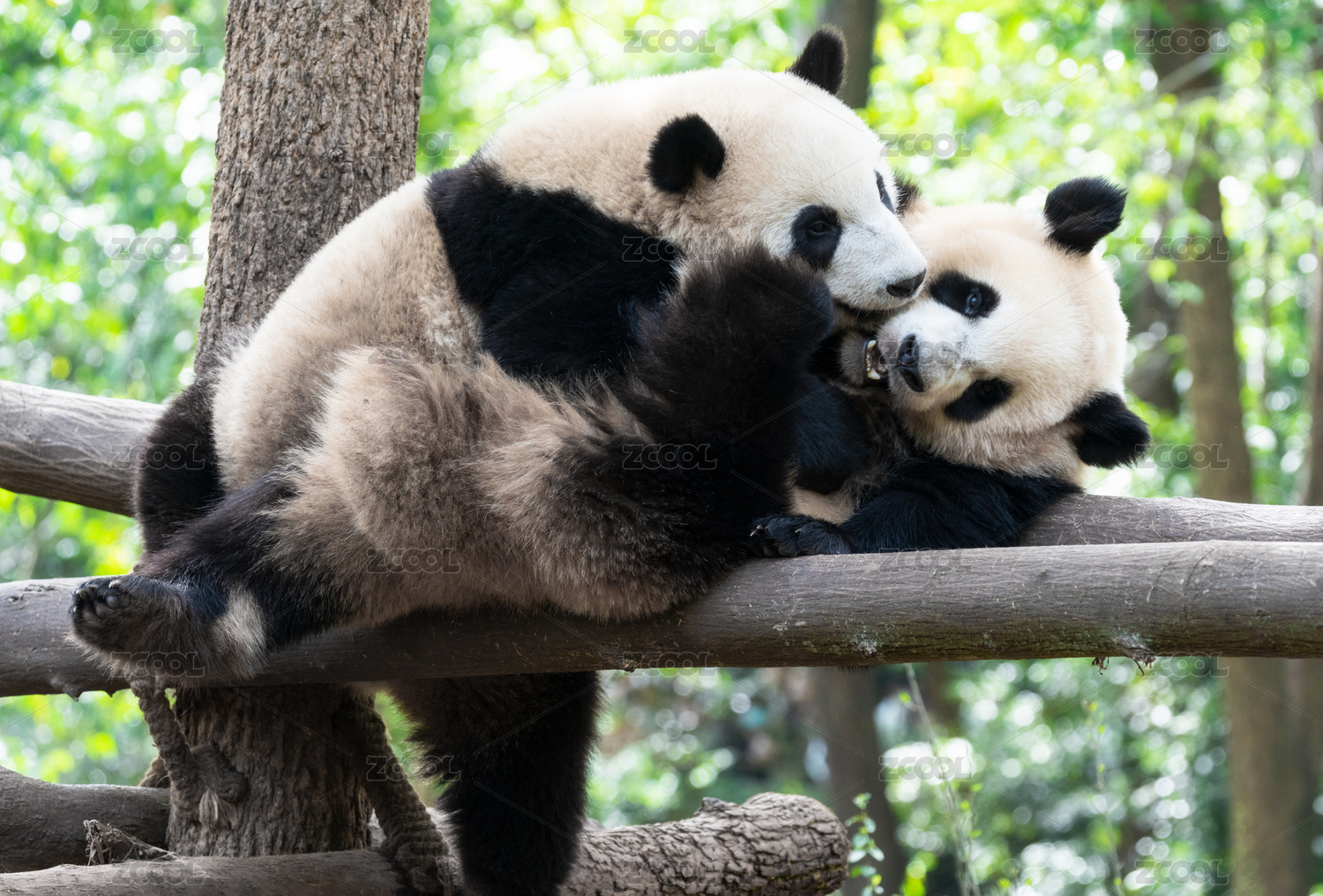 成都大熊猫繁育研究基地两只大熊猫幼崽玩耍