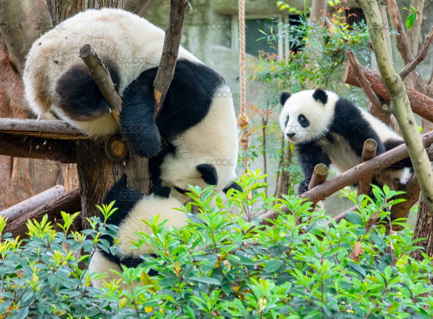 成都大熊猫繁育研究基地的大熊猫综合场景