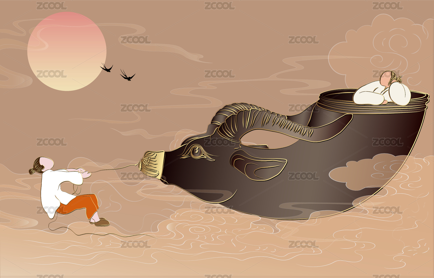 矢量,卡通,渐变,扁平,插画,插图,背景,元素,中国风,国风
