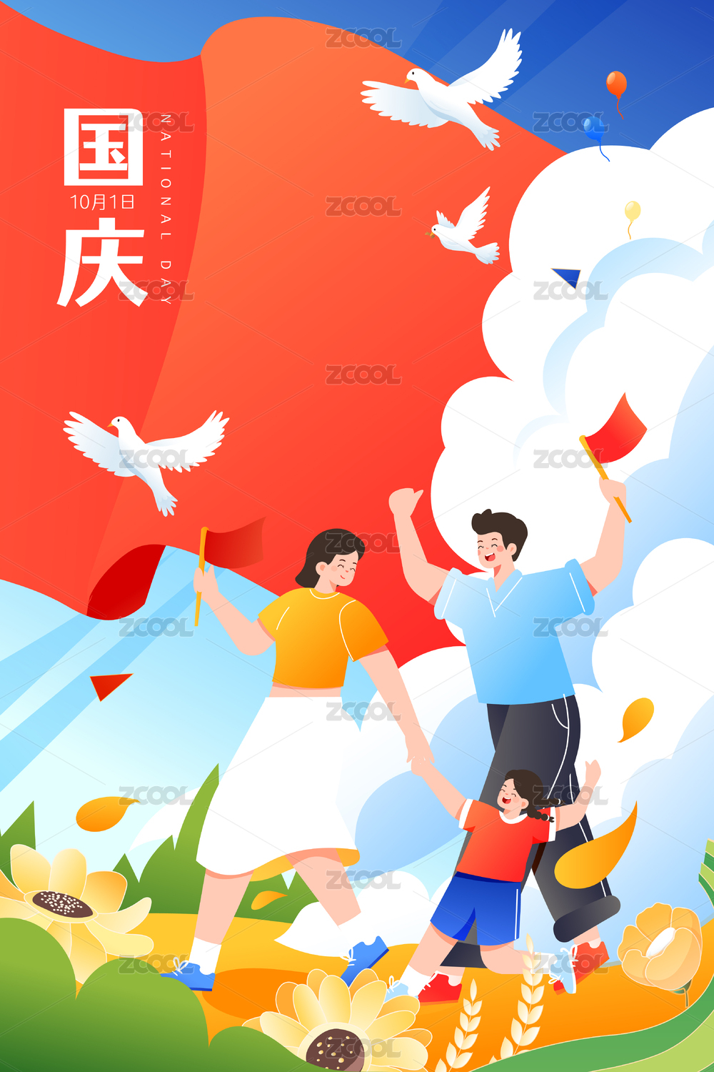 国庆节人们快乐的庆祝国庆生活方式矢量插画