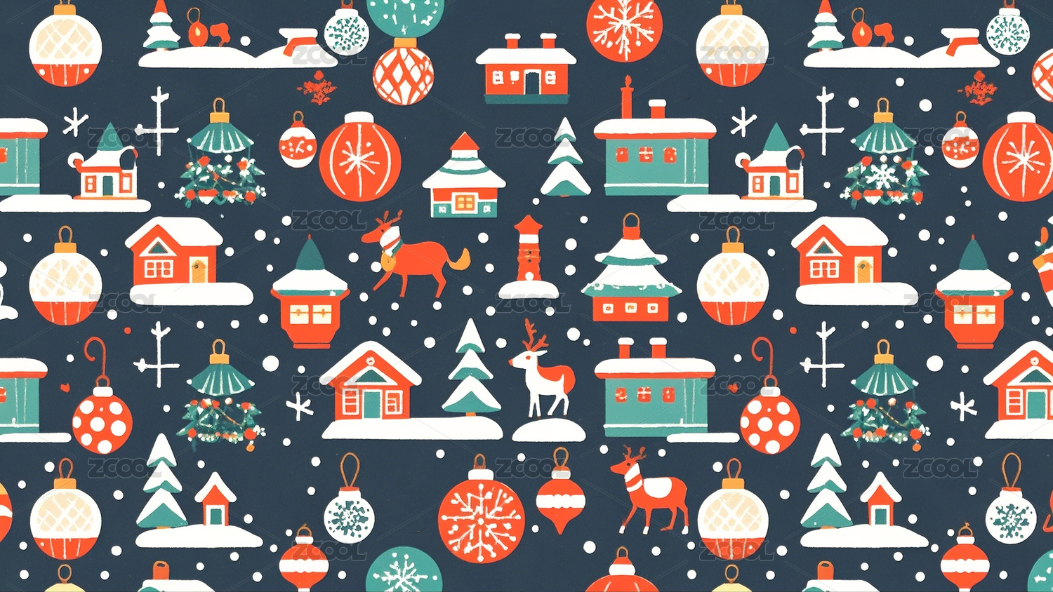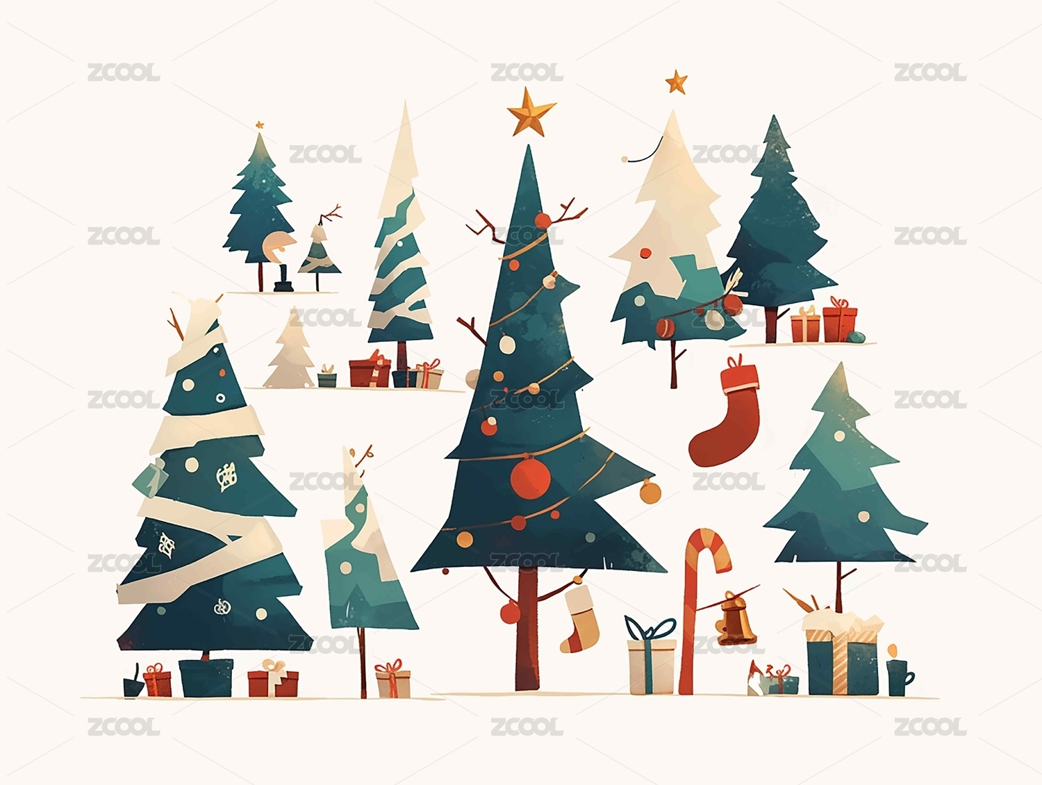 复古可爱圣诞节相关卡通矢量插画元素集合