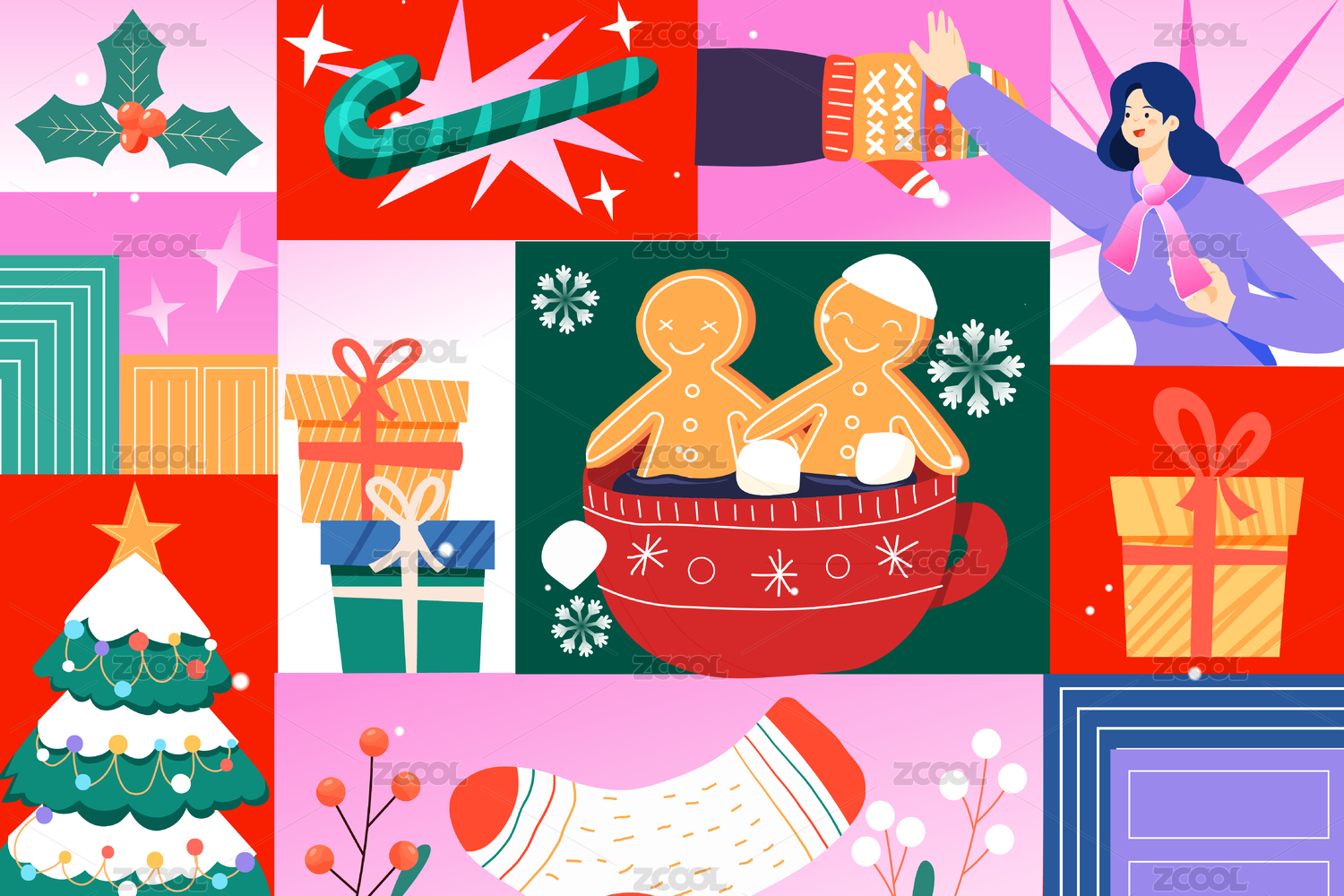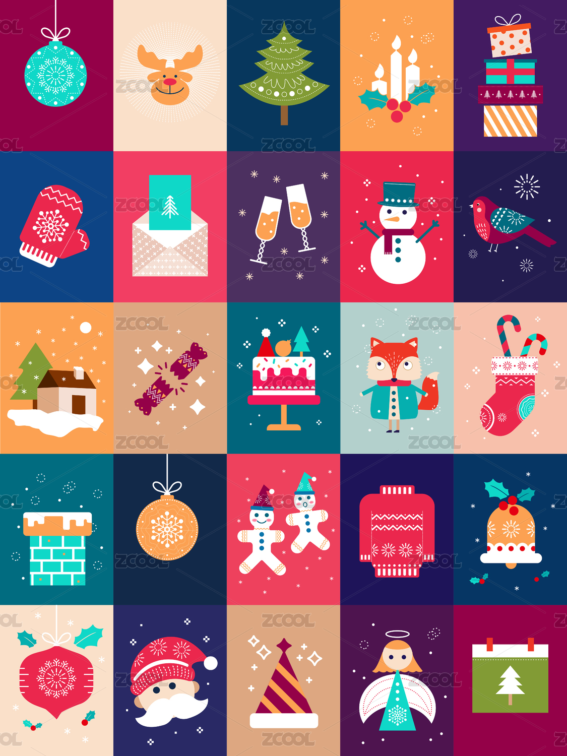 圣诞节25款元素配色图标冬天圣诞老人祝福