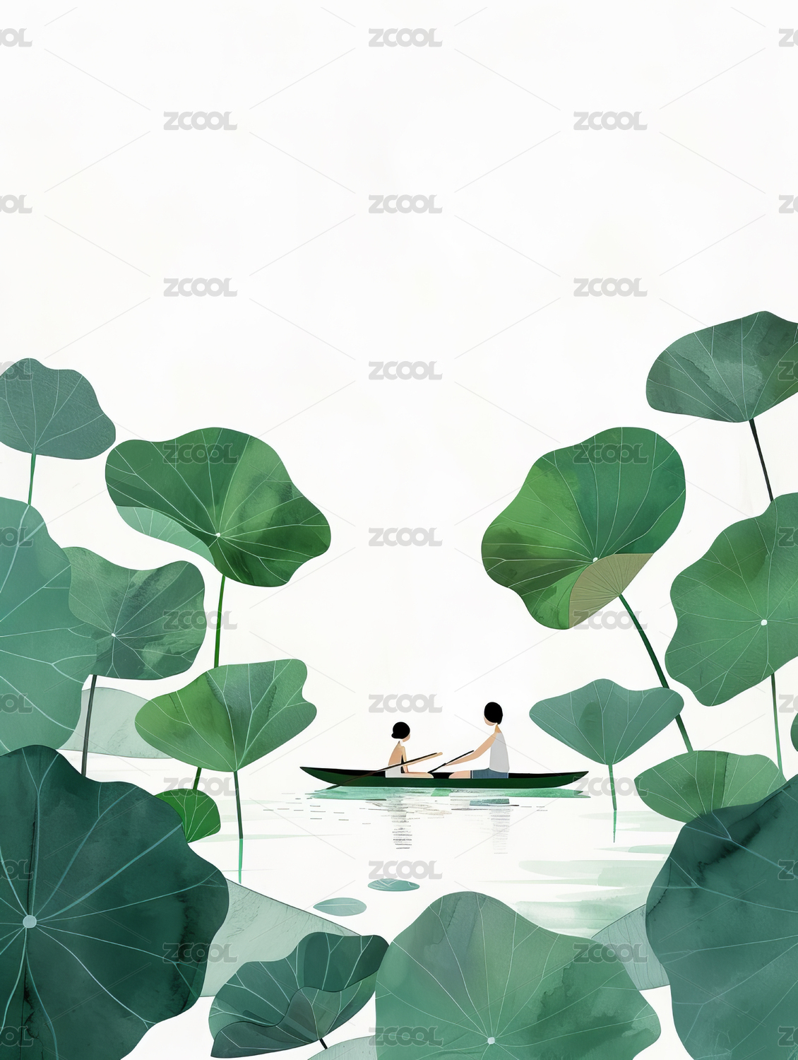 春天,清明,荷叶,划船,风景,桂花,绿色,古装,国风,扁平