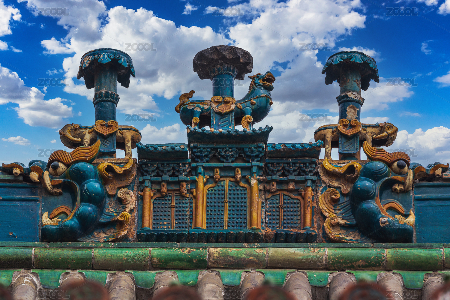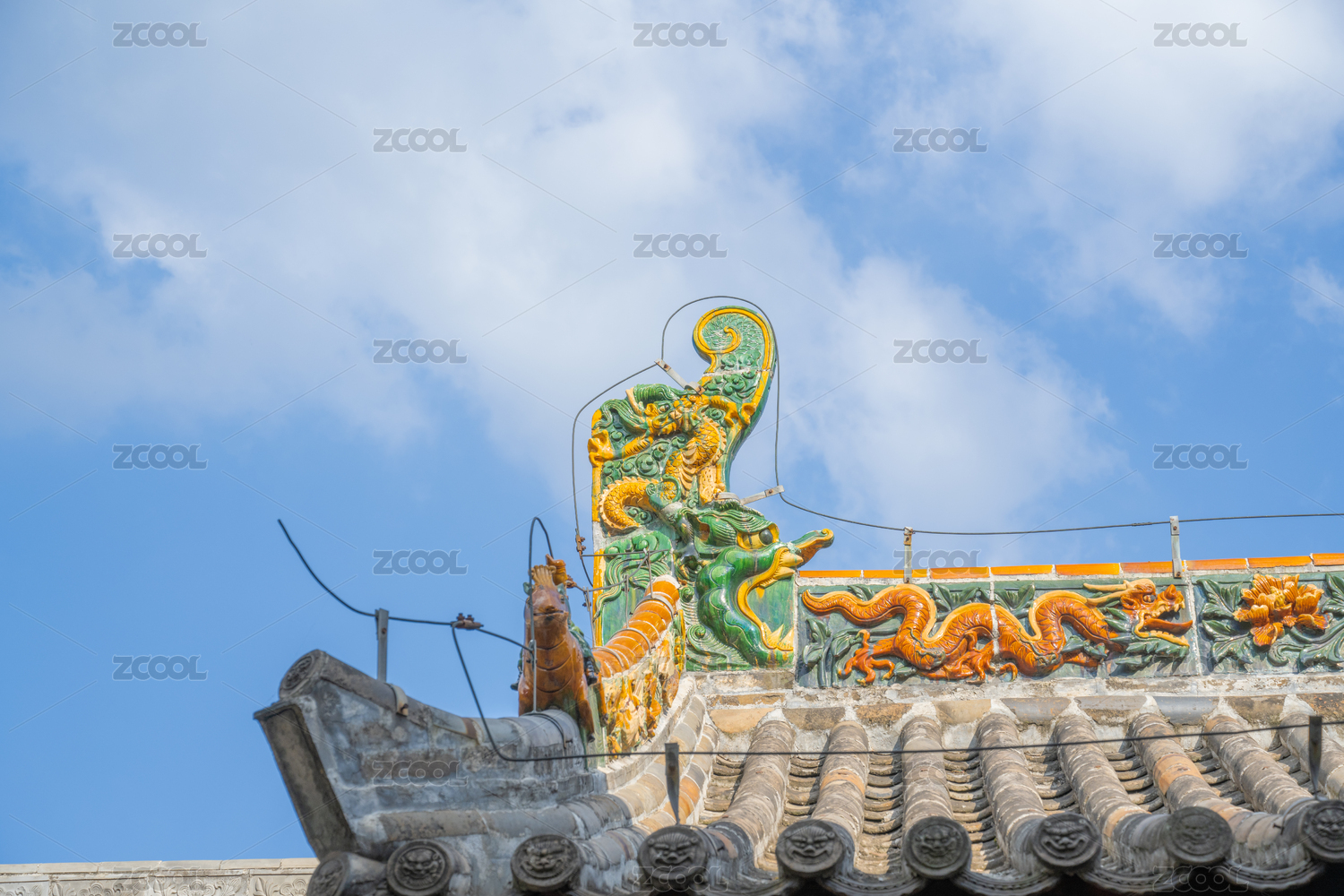 蓝天下的天坛皇穹宇宫殿脊兽特写