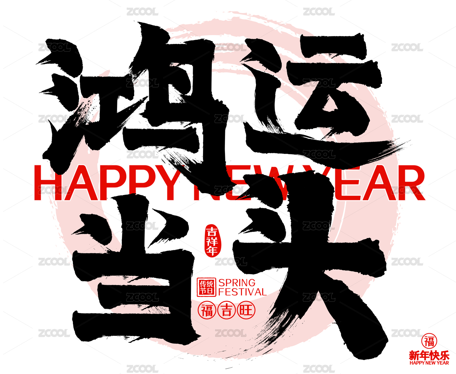 鸿运当头春节喜庆水墨中国风矢量书法字