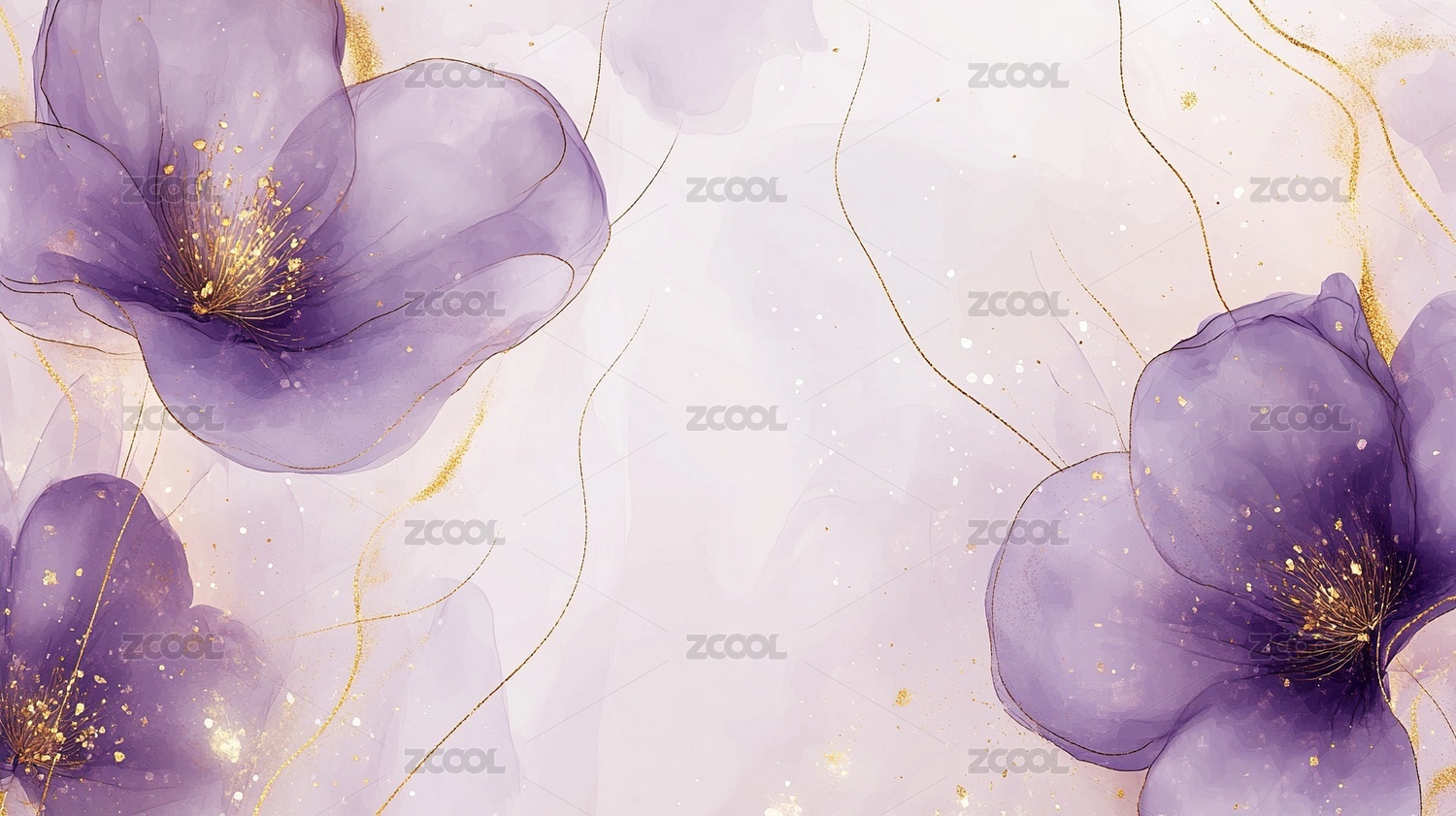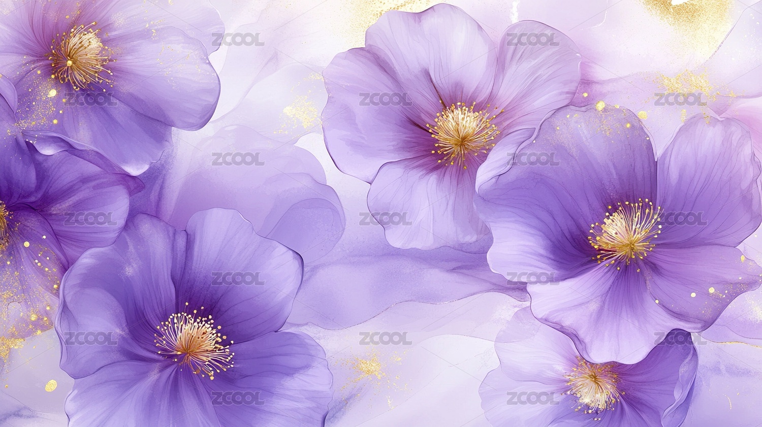 花,金箔,花瓣,水彩,花朵,抽象,艺术,浪漫,紫色