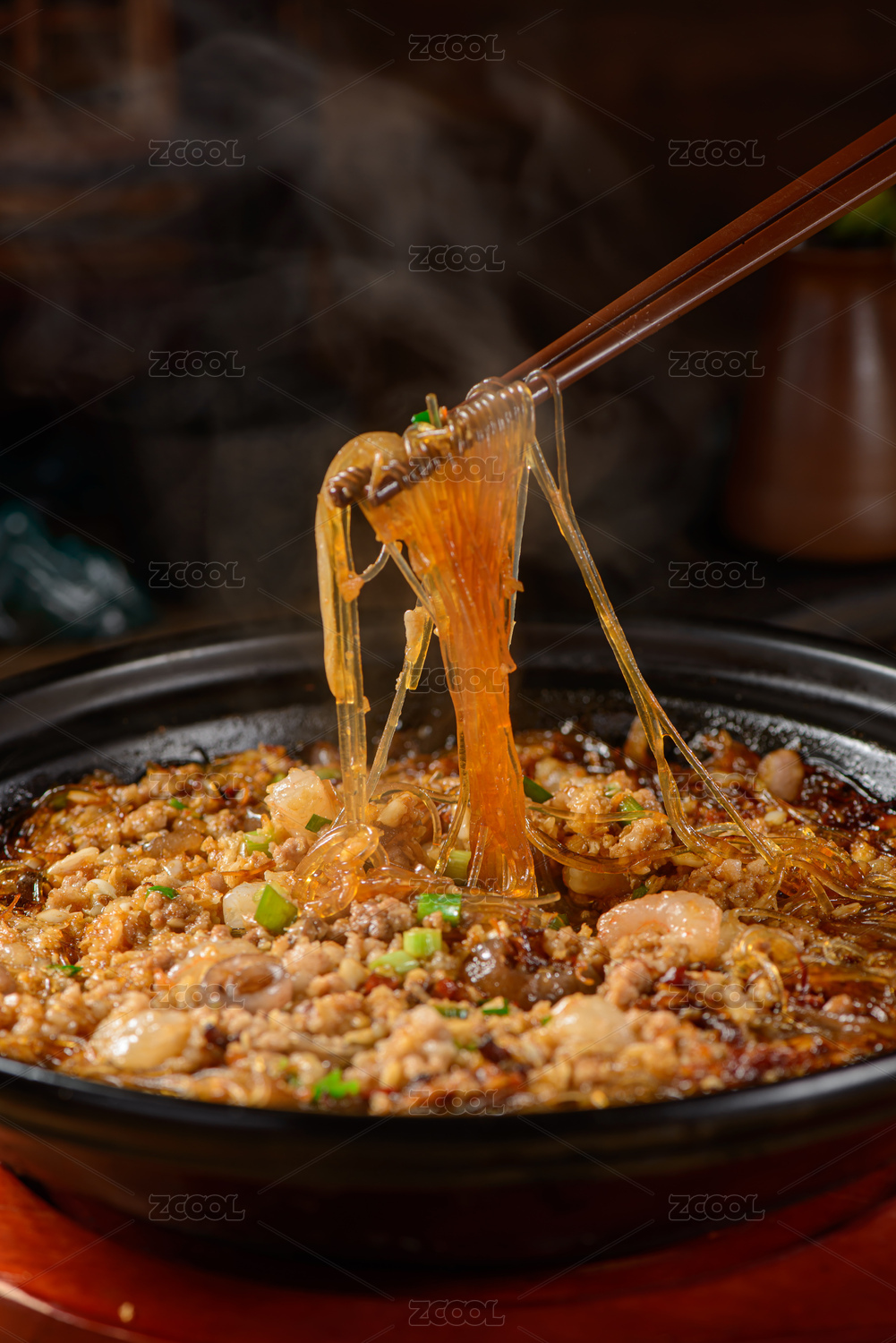 从砂锅中夹起来的四川成都特色美食肉末粉条