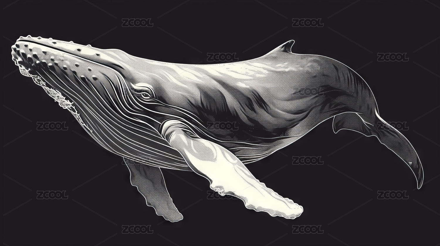 鲸鱼,海洋,手绘,插画,绘画,背景,白色,动物,艺术,风格