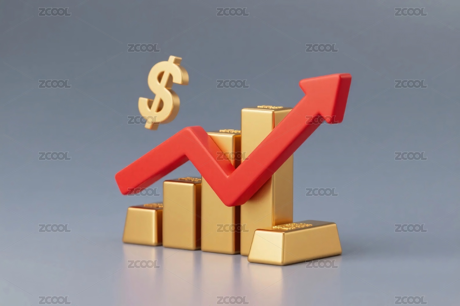 金色图表与美元符号上升图示