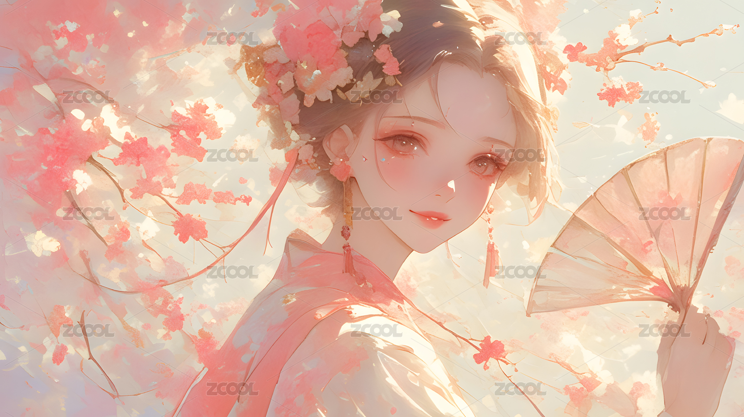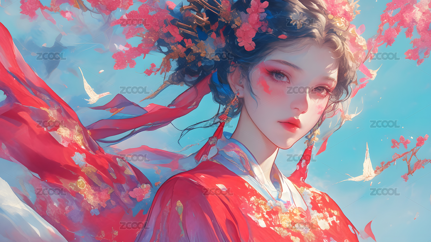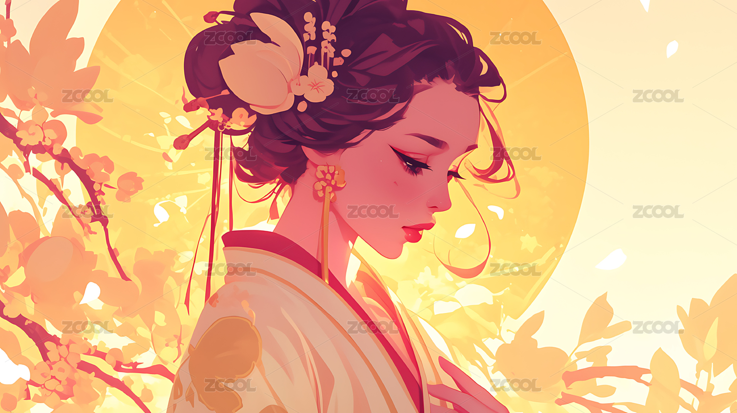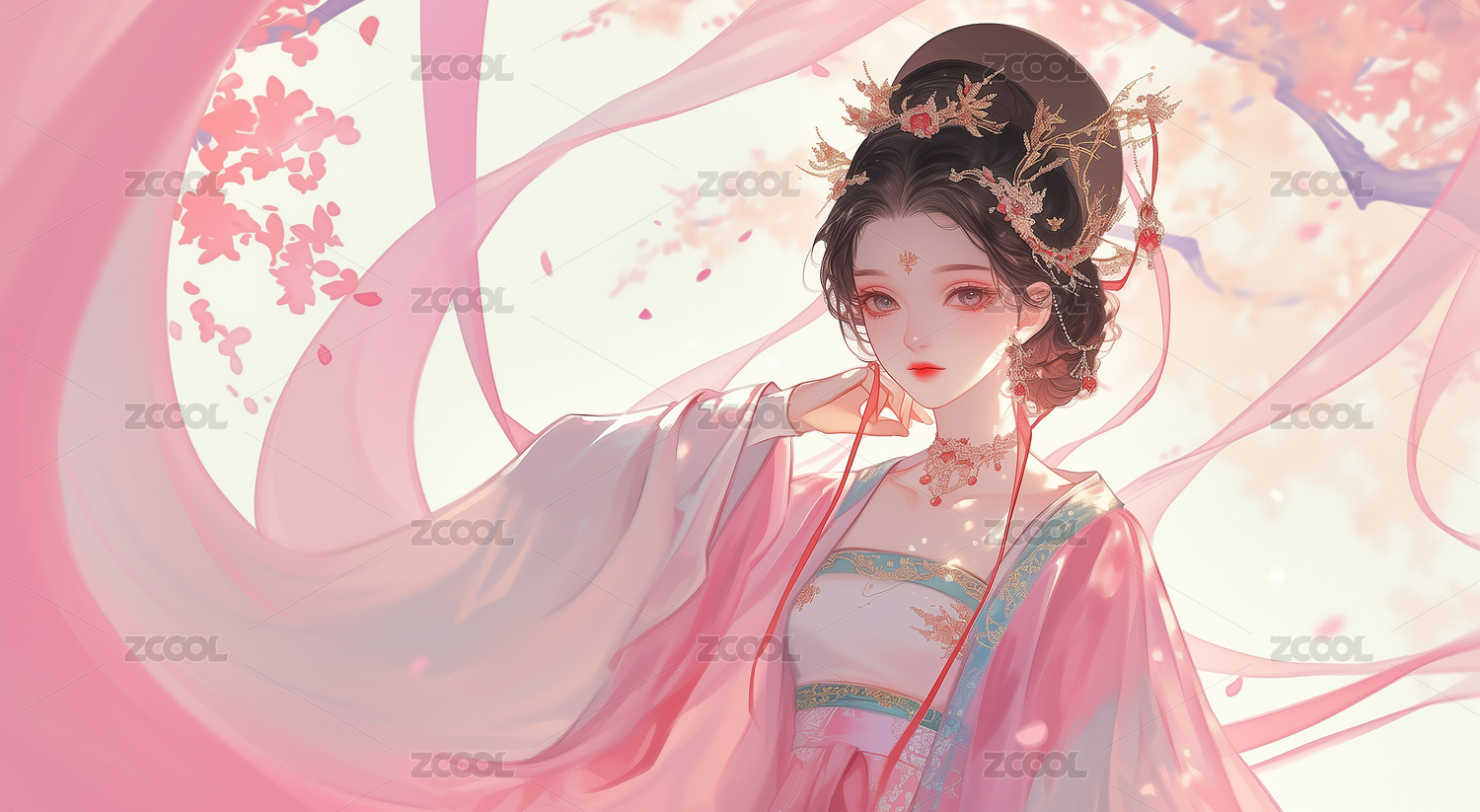 手绘卡通动漫唯美可爱的中国古风古装女孩插