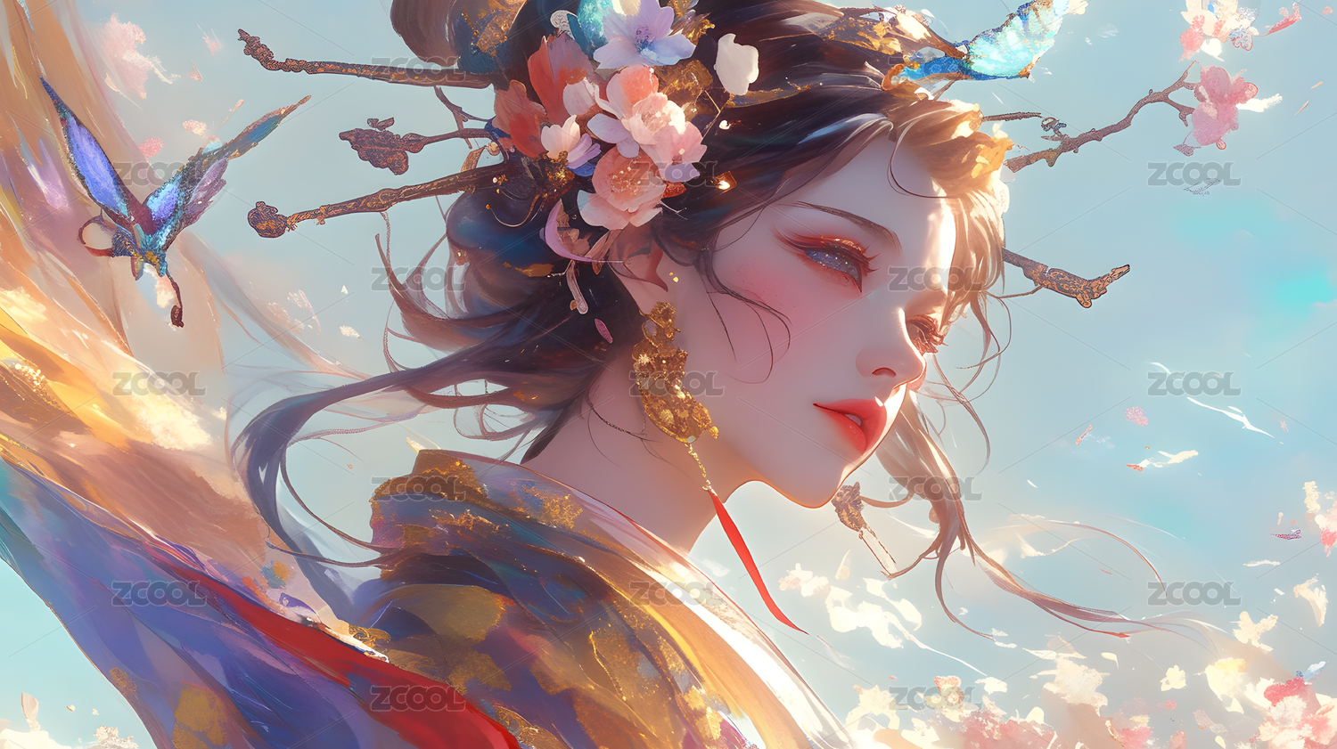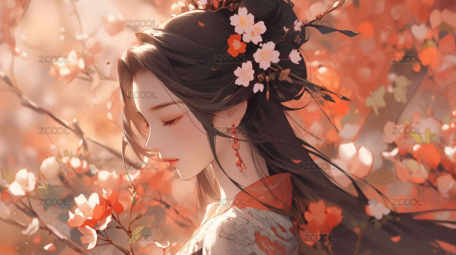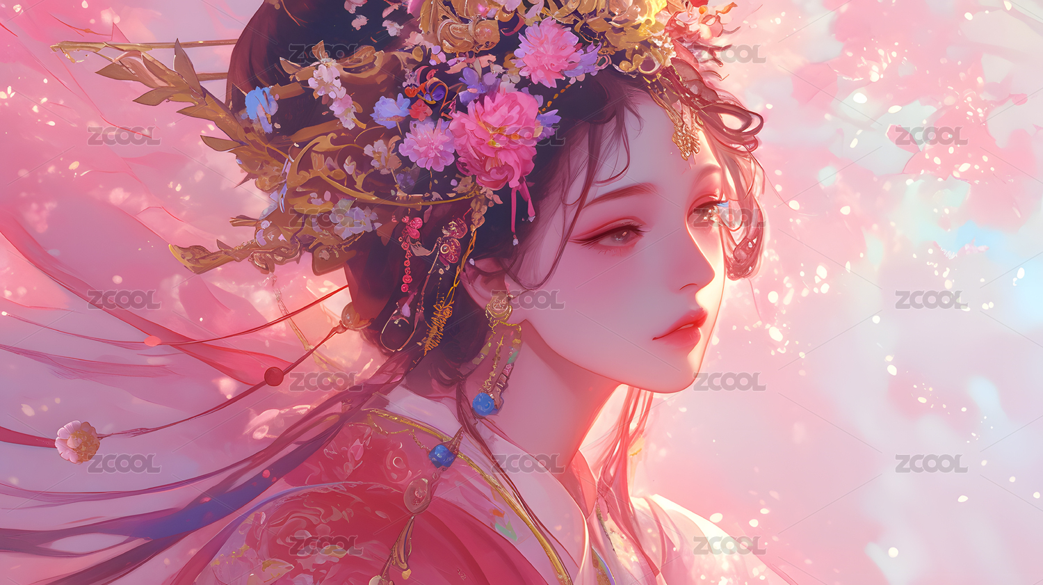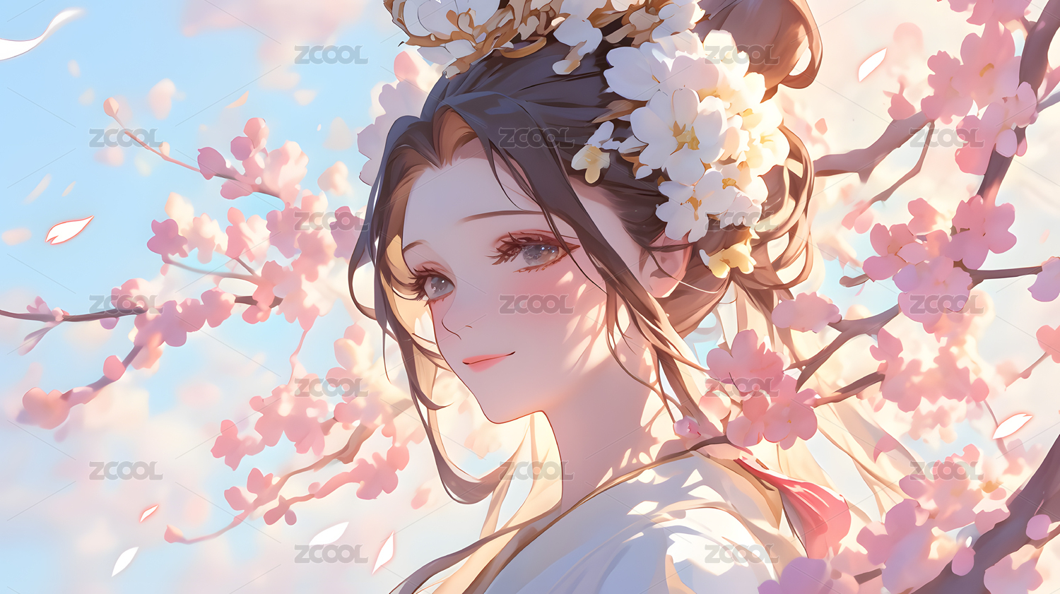 手绘卡通动漫唯美可爱的中国古风古装女孩插